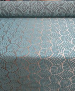 upholstery fabric teal metallic silver geometric leaf chenille robust durable