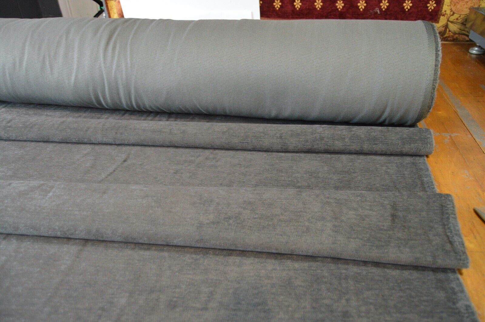 Lovely charcoal grey plain chenille upholstery fabric. A top quality fabric. A durable and robust, fire retardant treated upholstery fabric. Ideal for upholstery projects, caravan, sofa, chairs etc. This is a clearance fabric from a top sofa manufacturer.