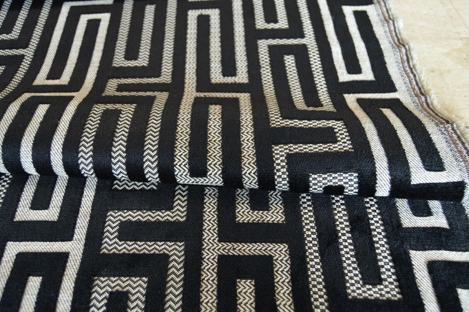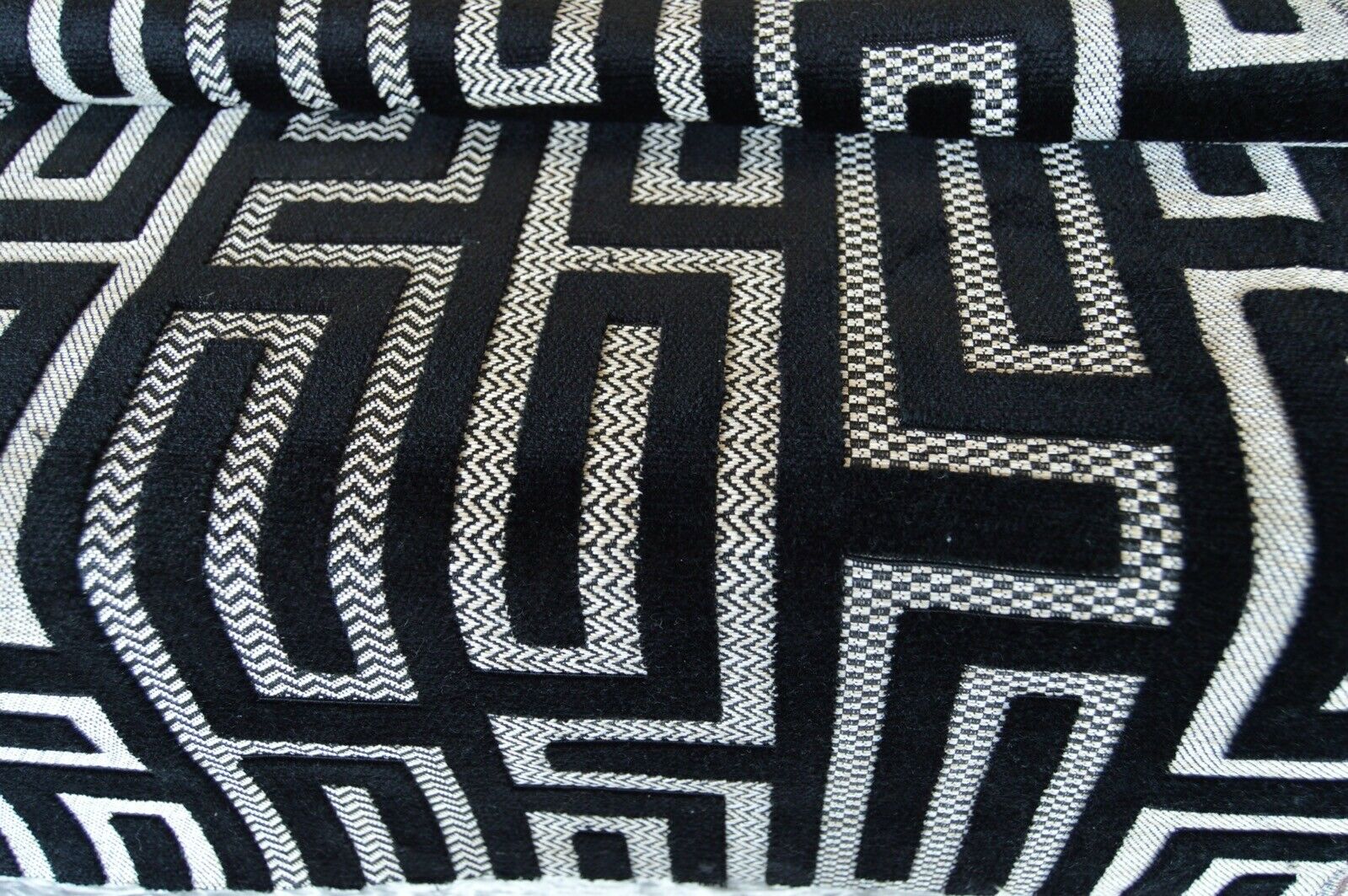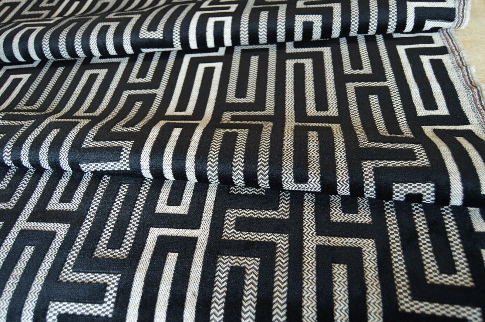 fabric upholstery black embossed geometric beige back ground robust durable