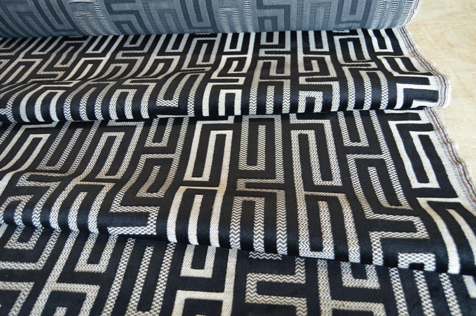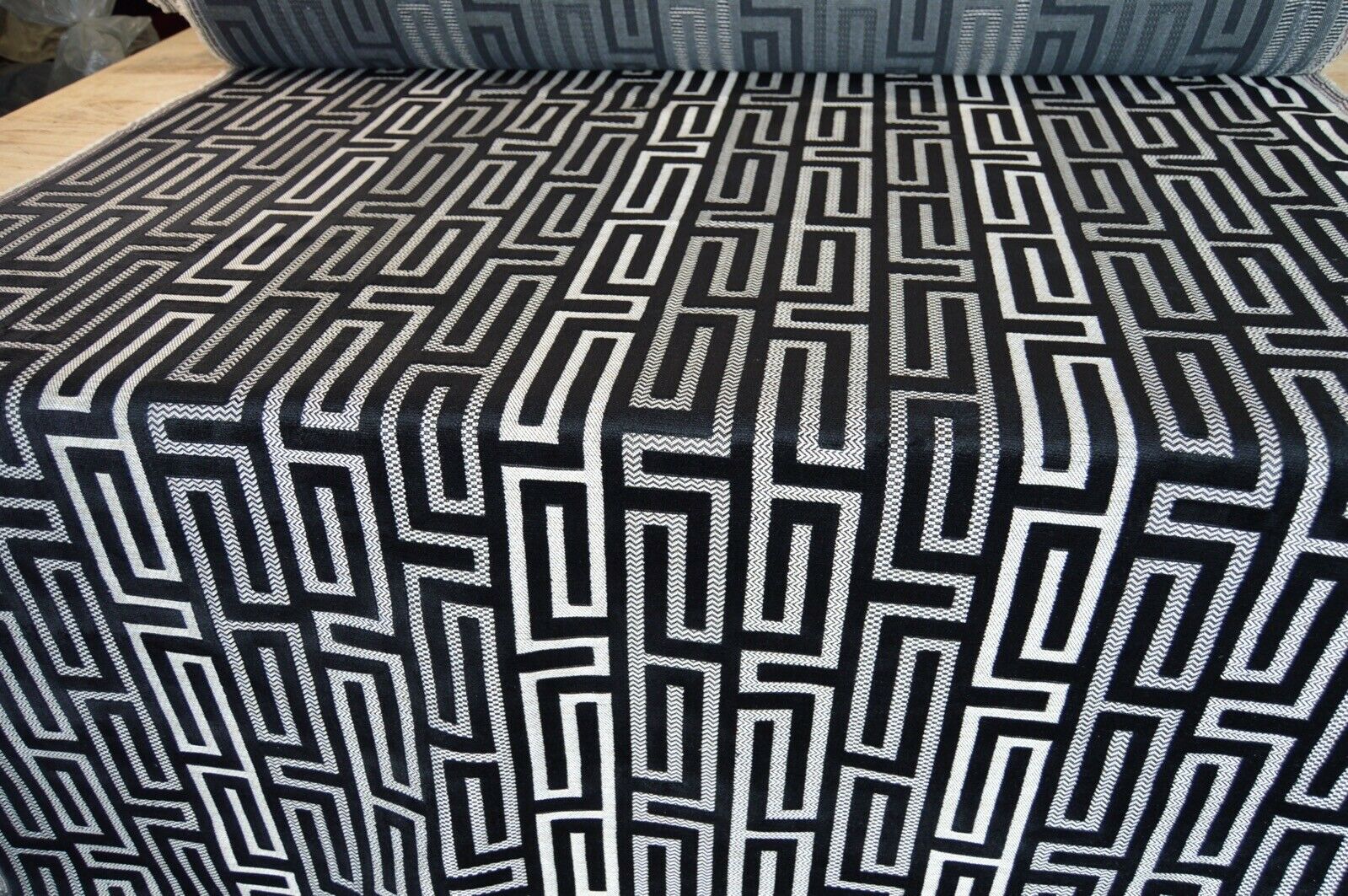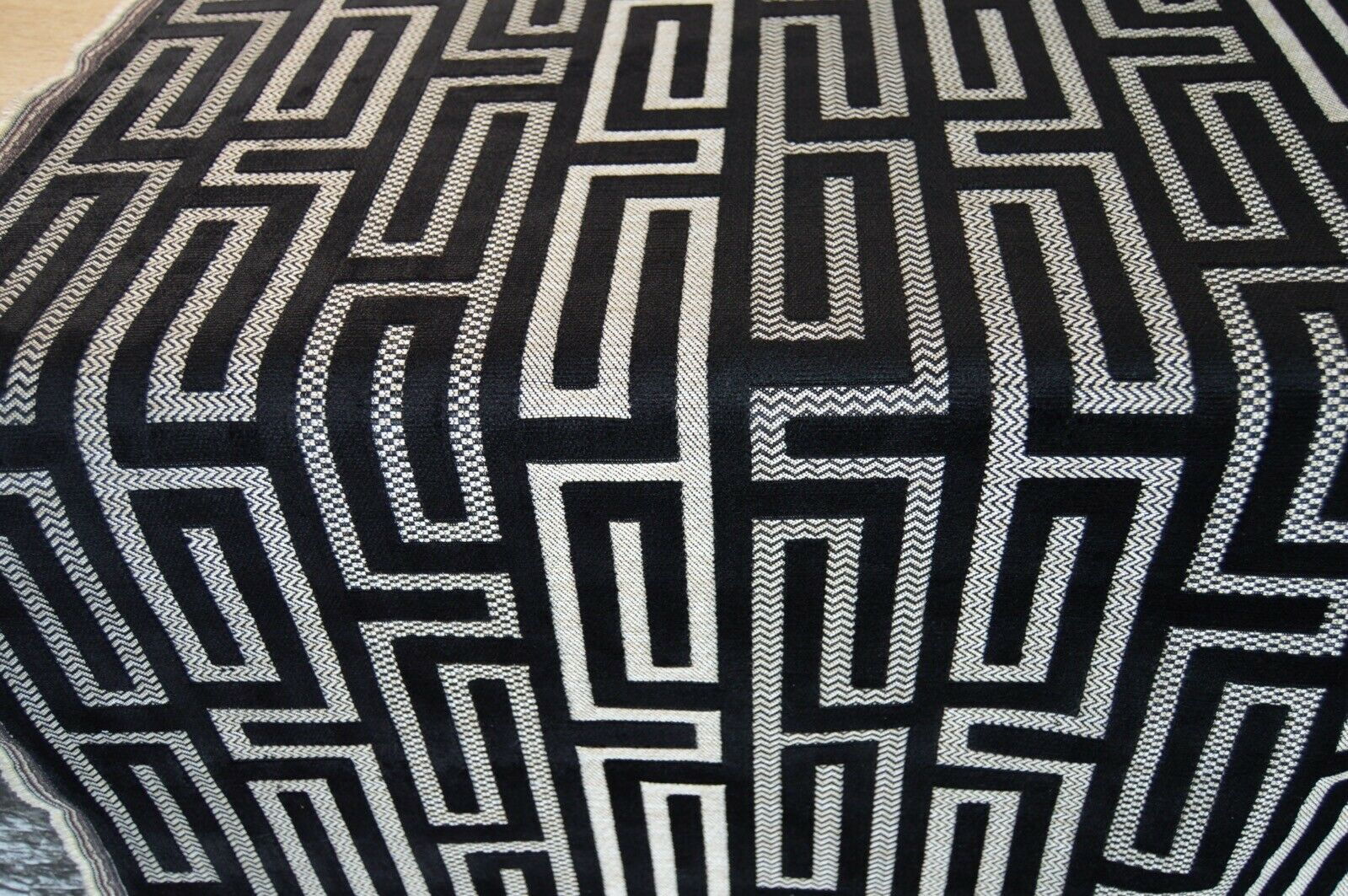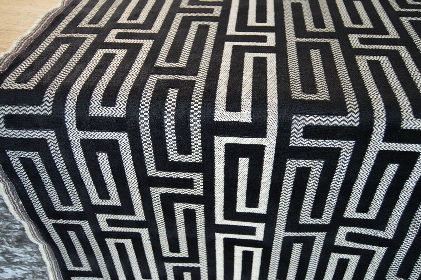 fabric upholstery black embossed geometric beige back ground robust durable