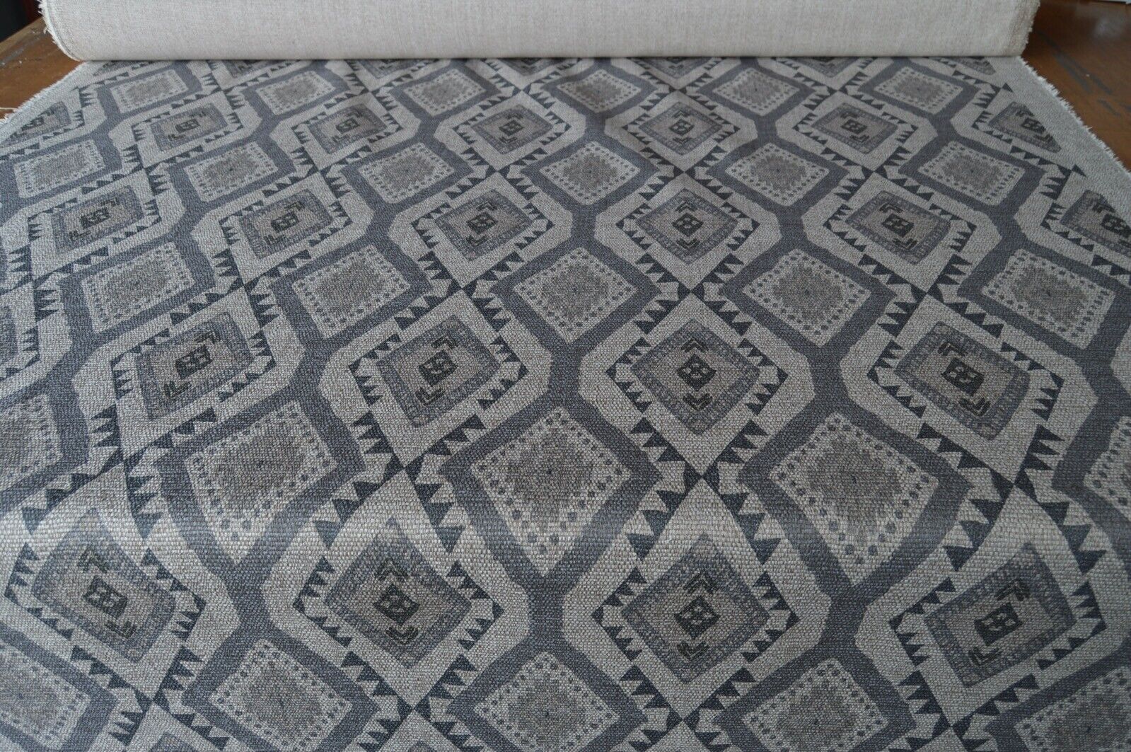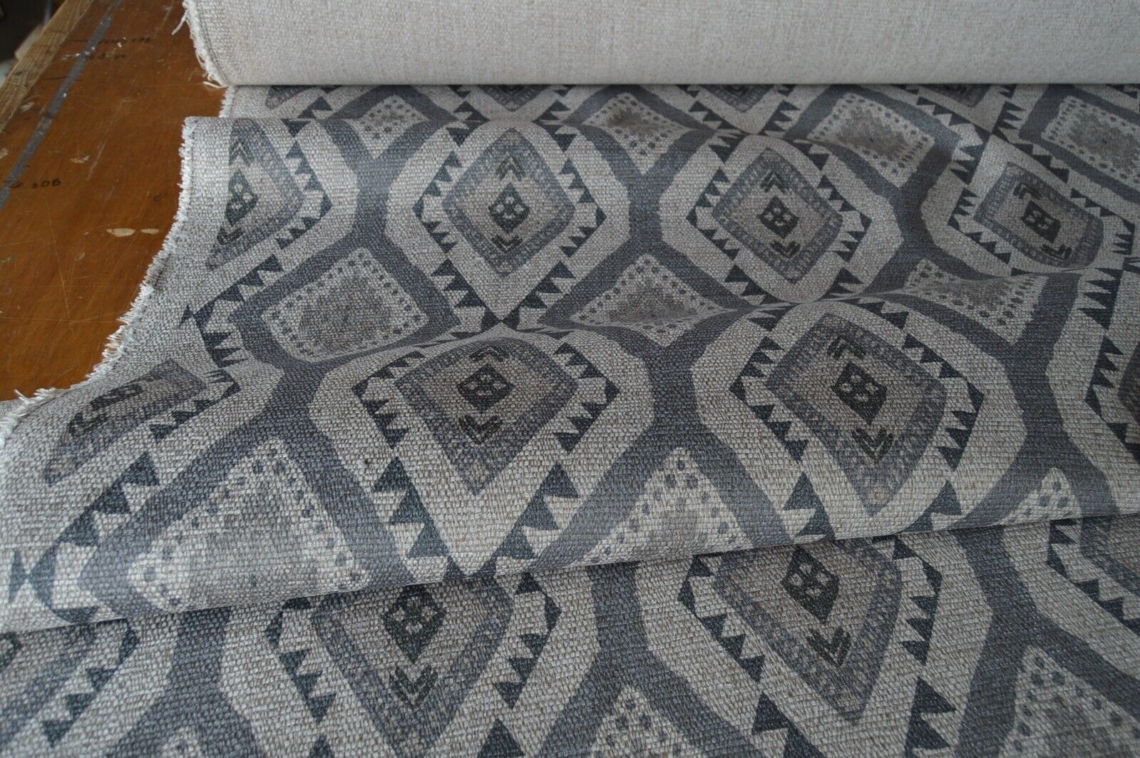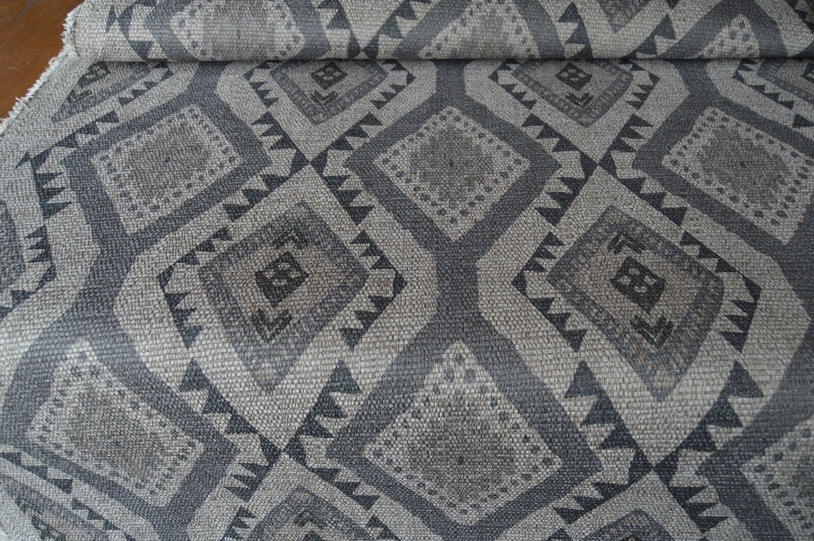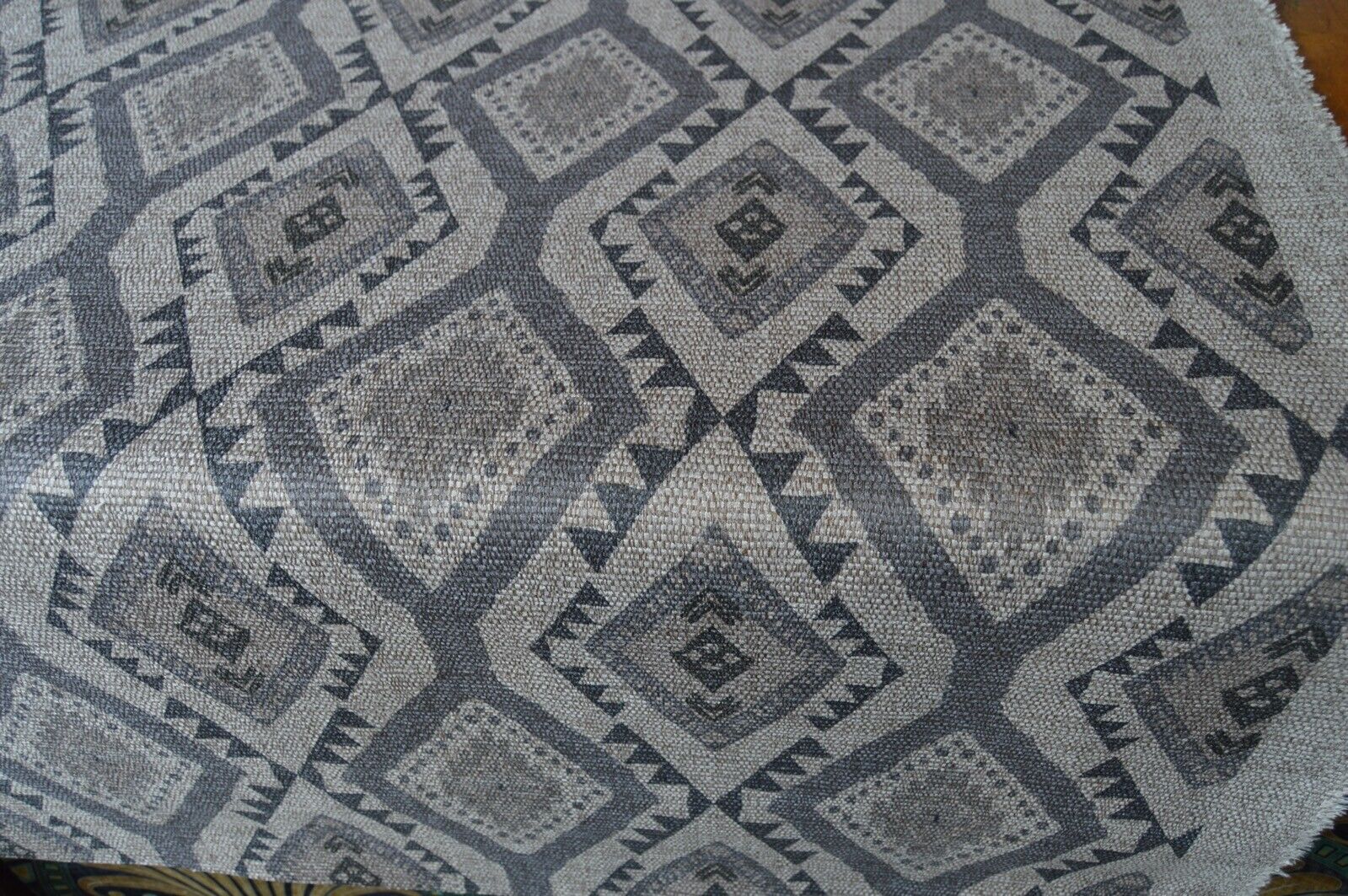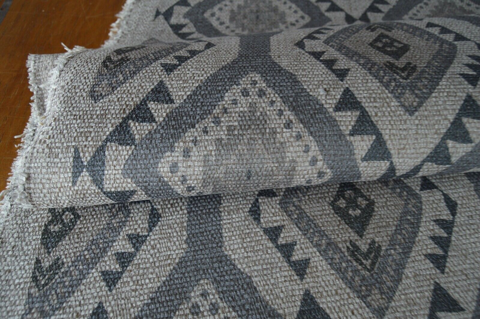 fabric upholstery grey & natural aztec design hessian look chenille weave robust