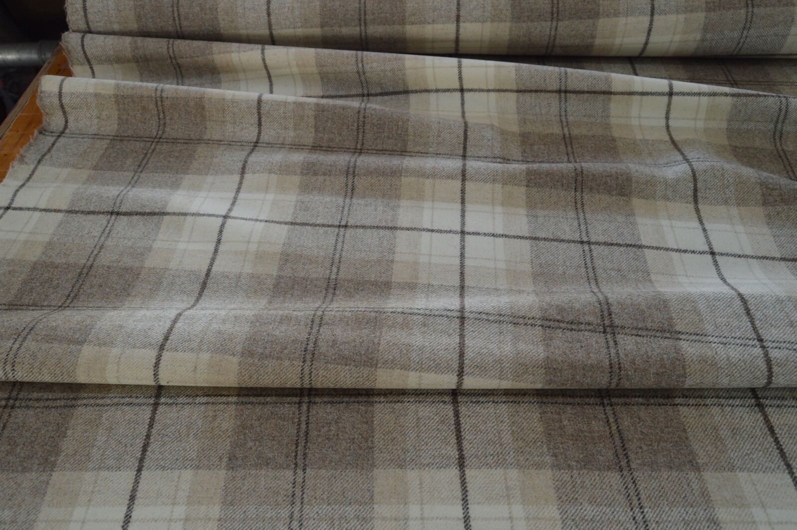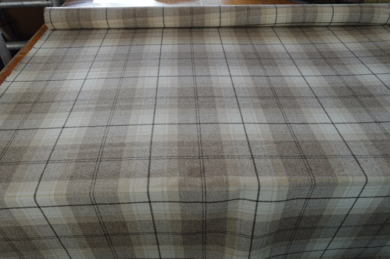 Lovely Art of the loom 100% wool plaid, checked fabric. Deven fudge check. A top quality fabric. A durable and robust fabric. Ideal for upholstery projects, caravan, sofa, chairs etc. This is a clearance fabric from a top sofa manufacturer.