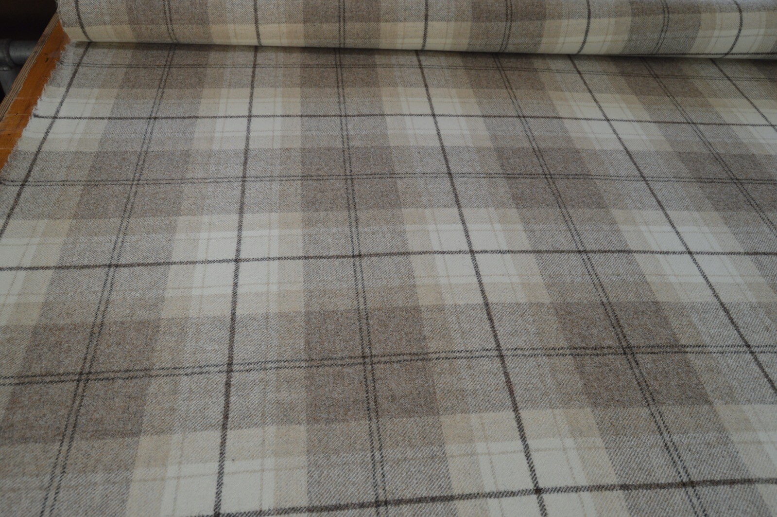 fabric wool upholstery Art of the loom Devon fudge wool check 5.9 metre length