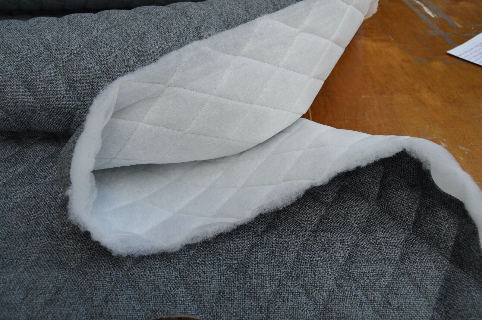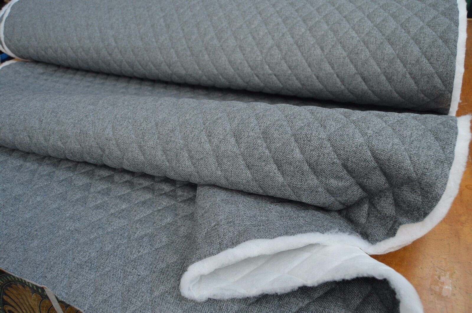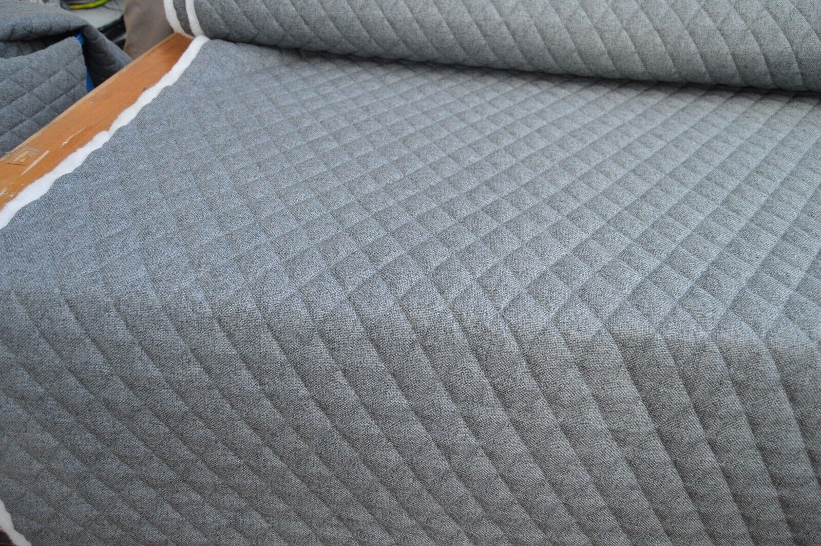 Lovely grey weave quilted wadded, stitched diamonds, upholstery fabric. A top quality fabric. A durable and robust, upholstery fabric. Ideal for upholstery projects, caravan, sofa, chairs etc. This is a clearance fabric from a top sofa manufacturer.