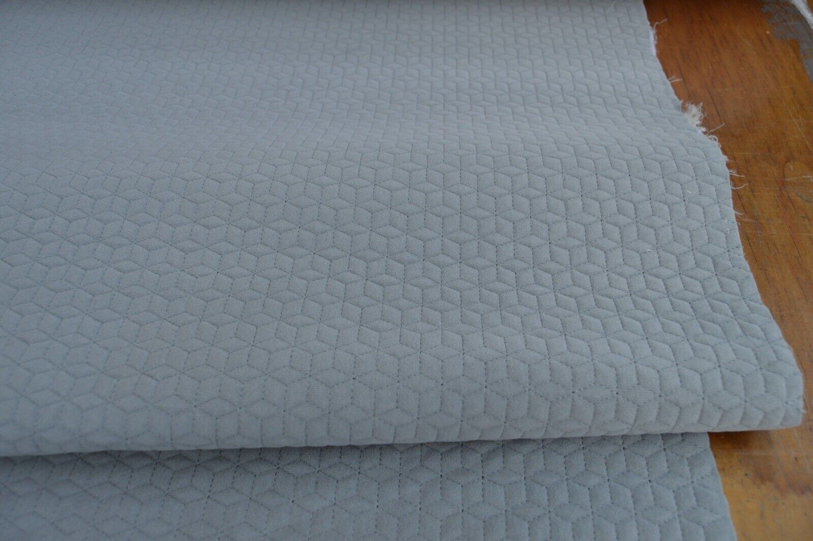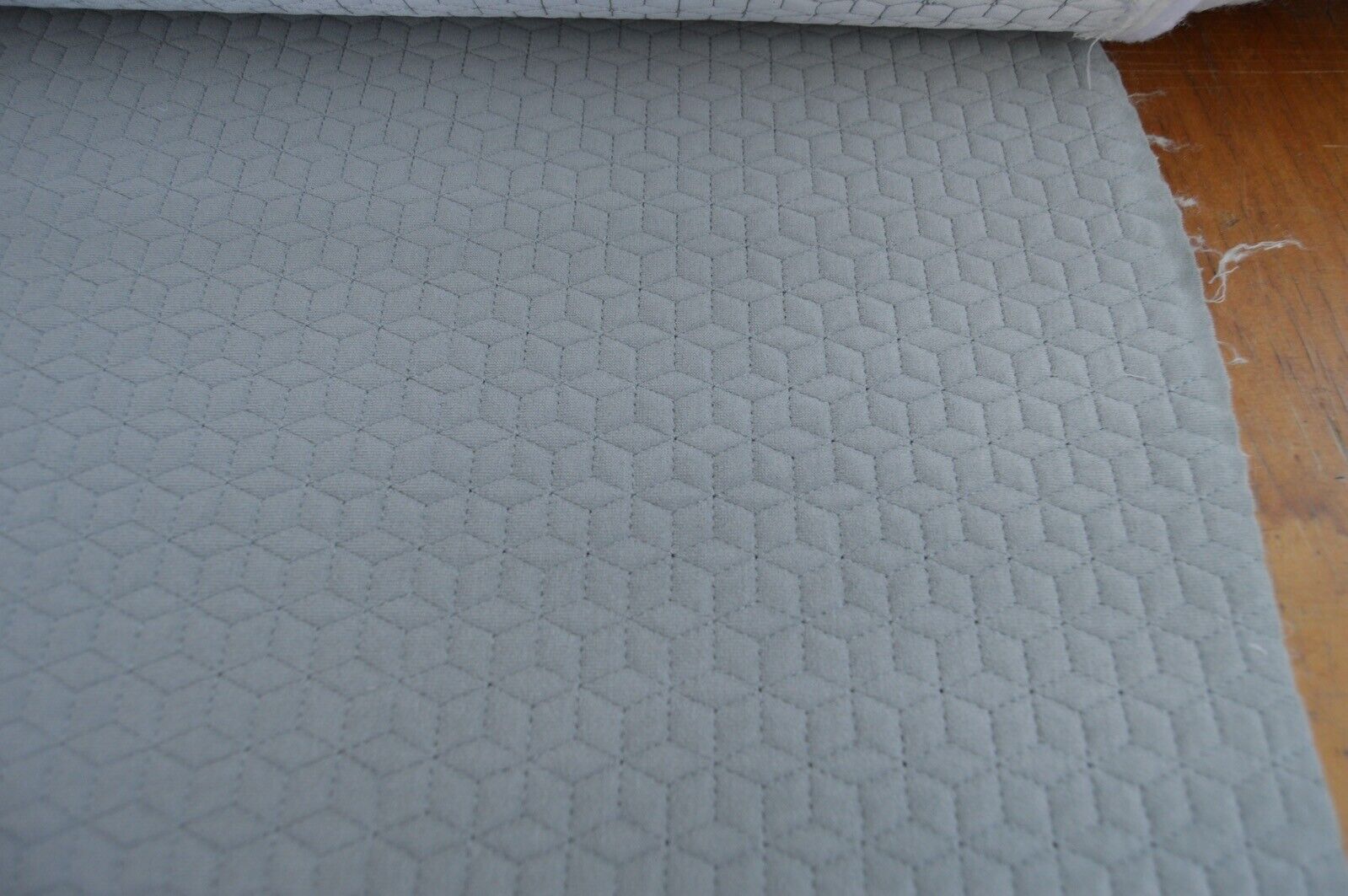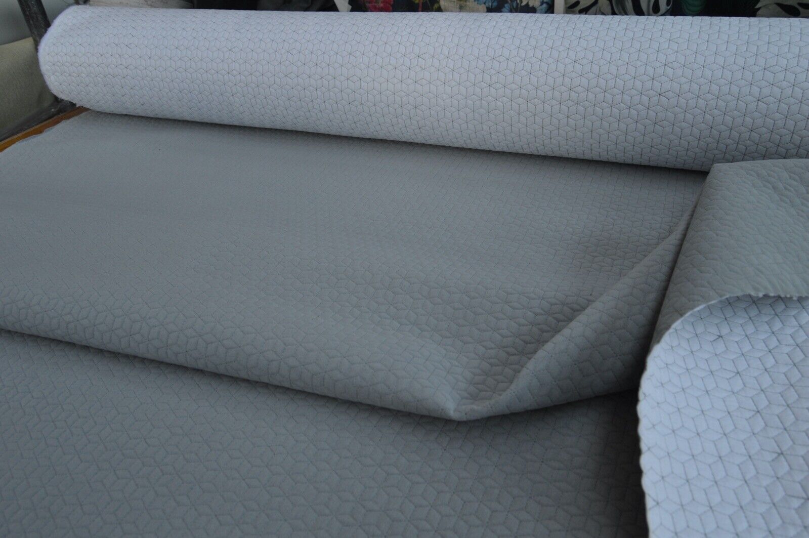 Lovely silver grey quilted velvety, soft feel, geometric stitched design, upholstery fabric. A top quality fabric. A durable and robust, upholstery fabric. Ideal for upholstery projects, caravan, sofa, chairs etc. This is a clearance fabric from a top sofa manufacturer.