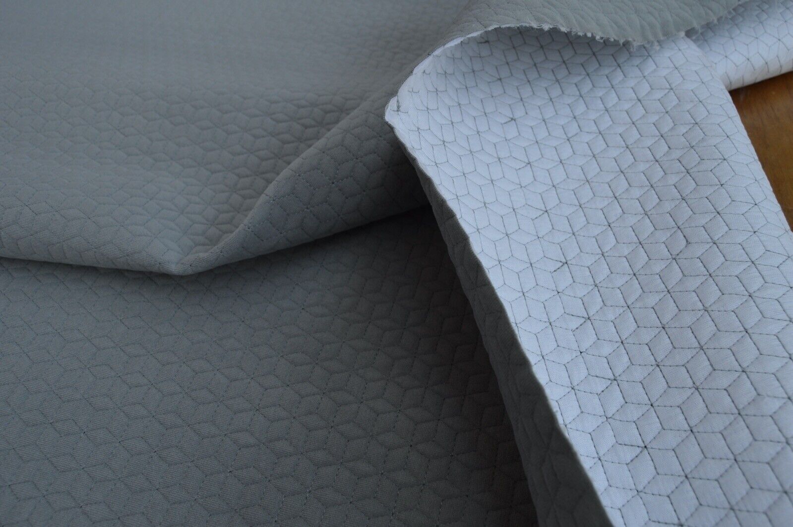 Quilted upholstery fabric robust silver grey velvety geometric stitch design