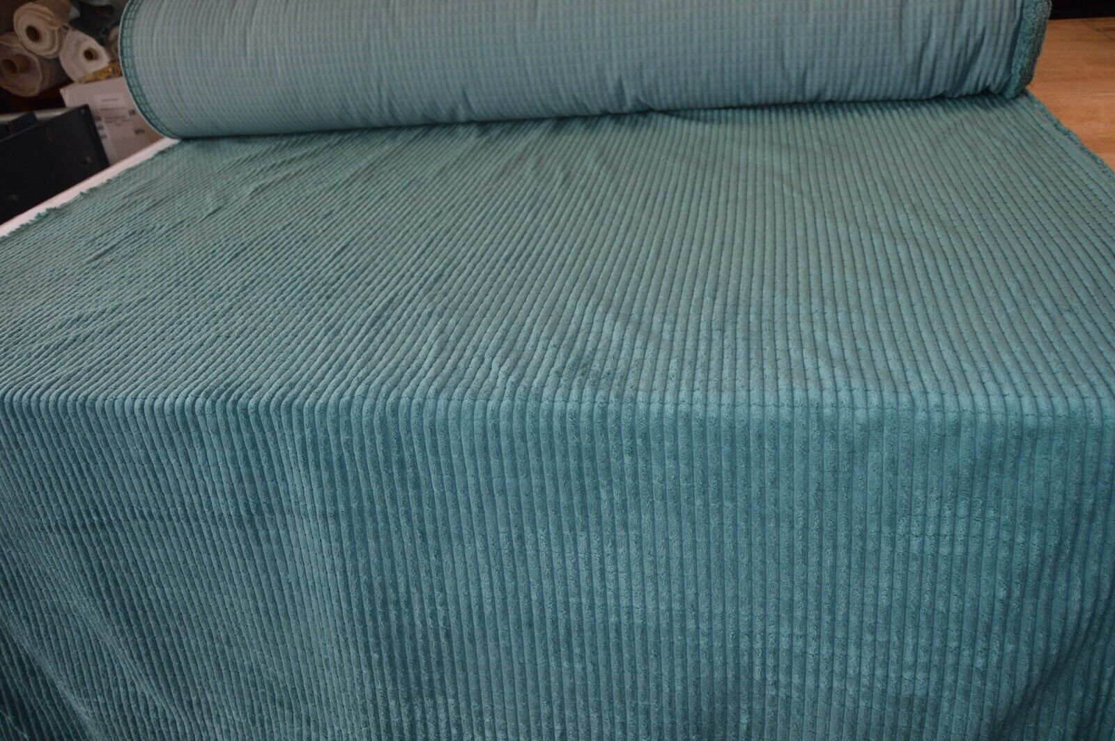 teal upholstery fabric brick cord style super soft touch thick pile robust