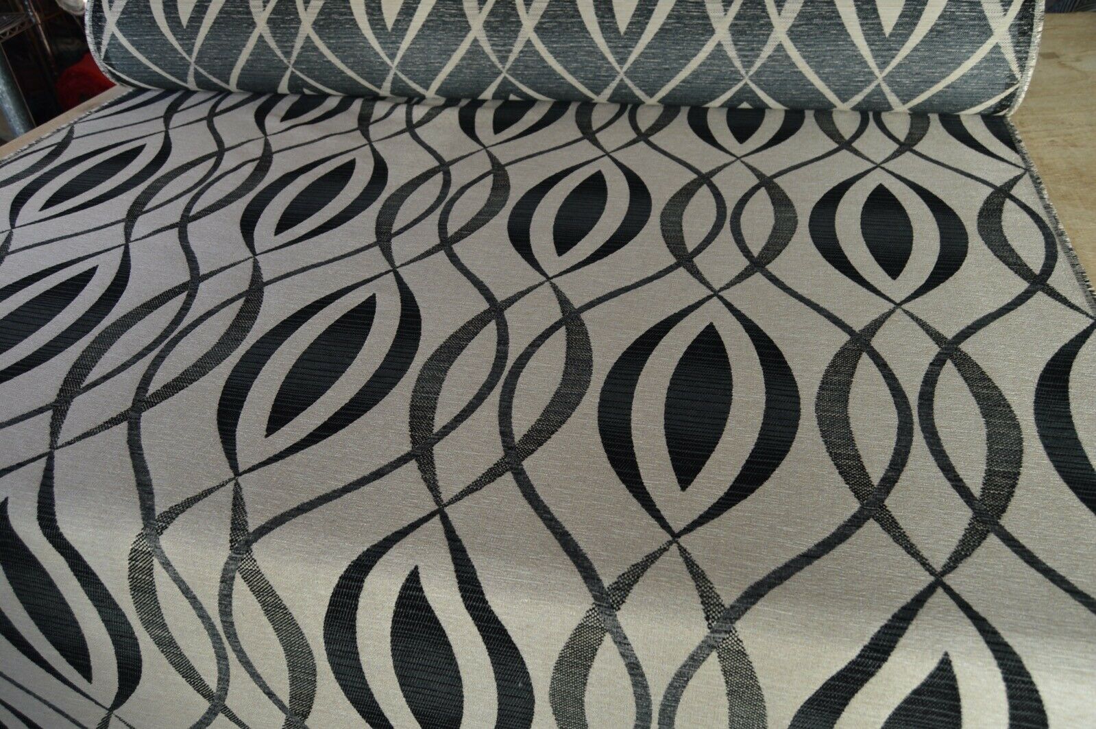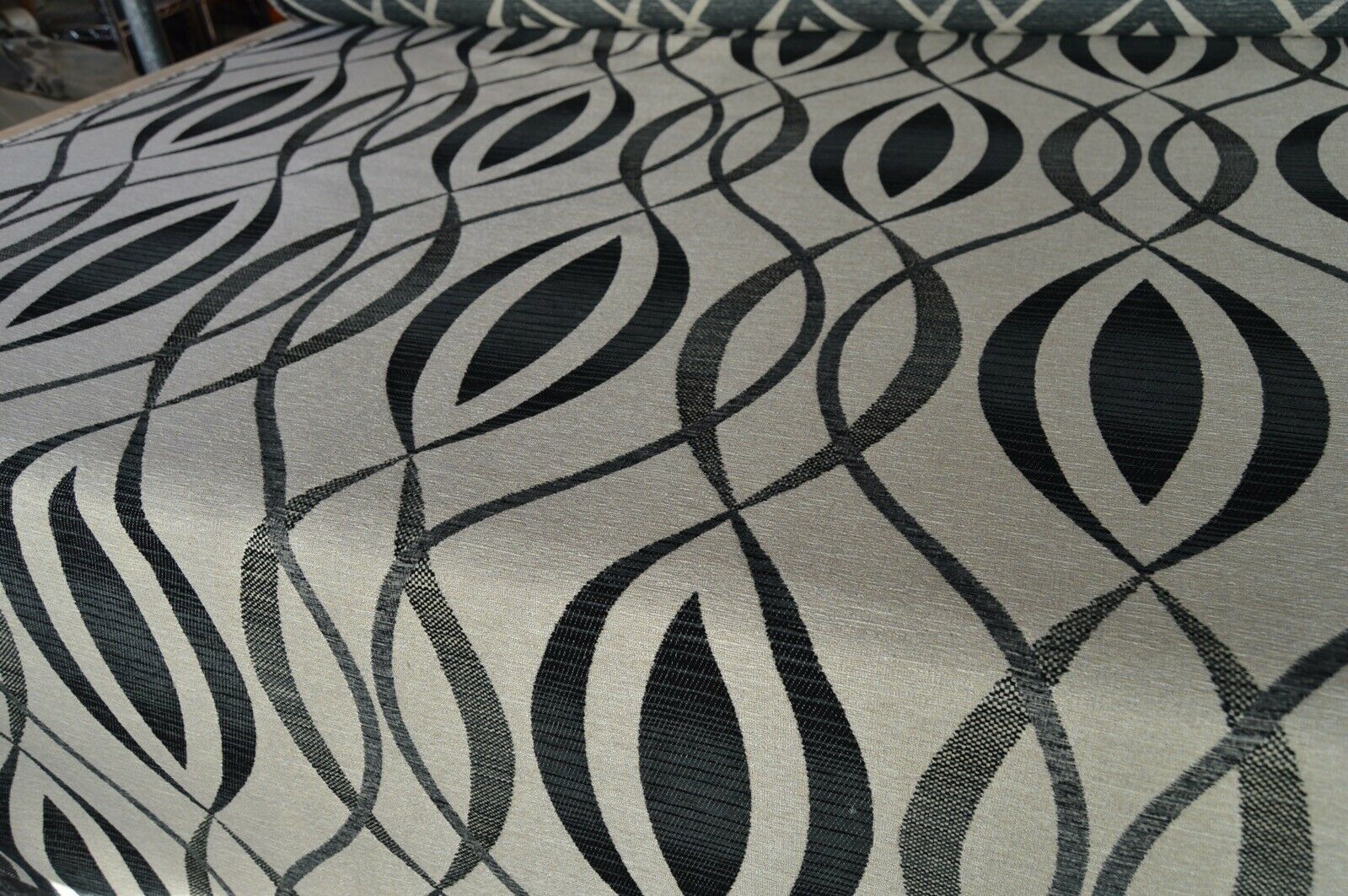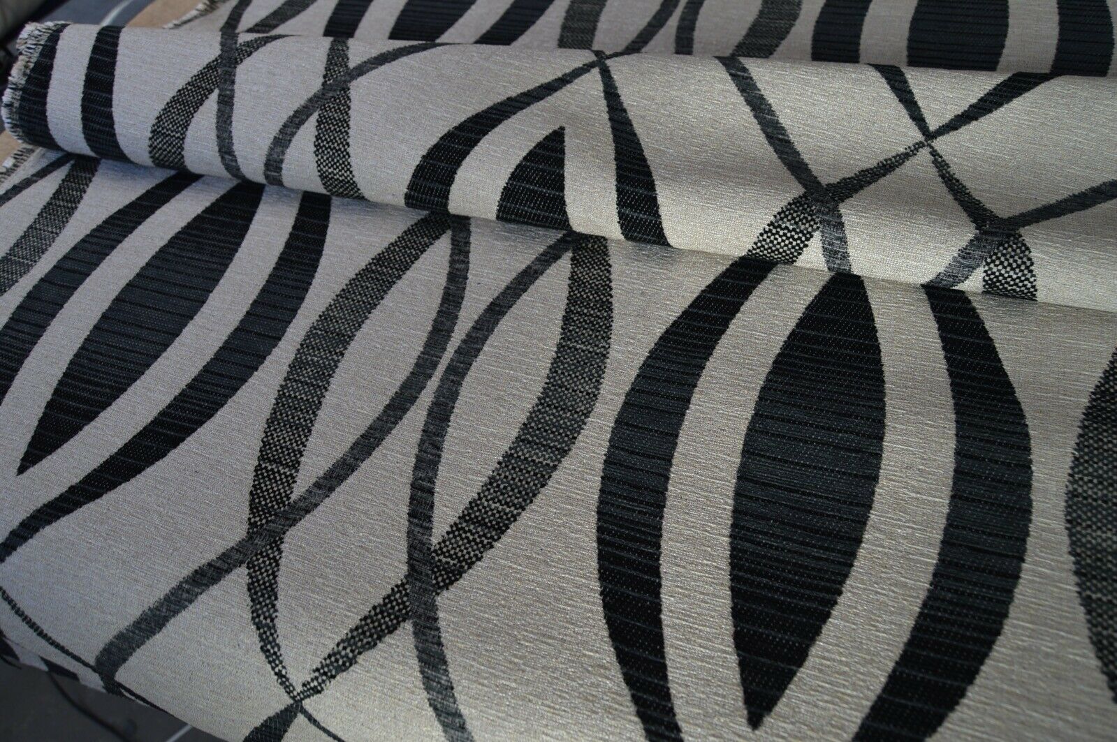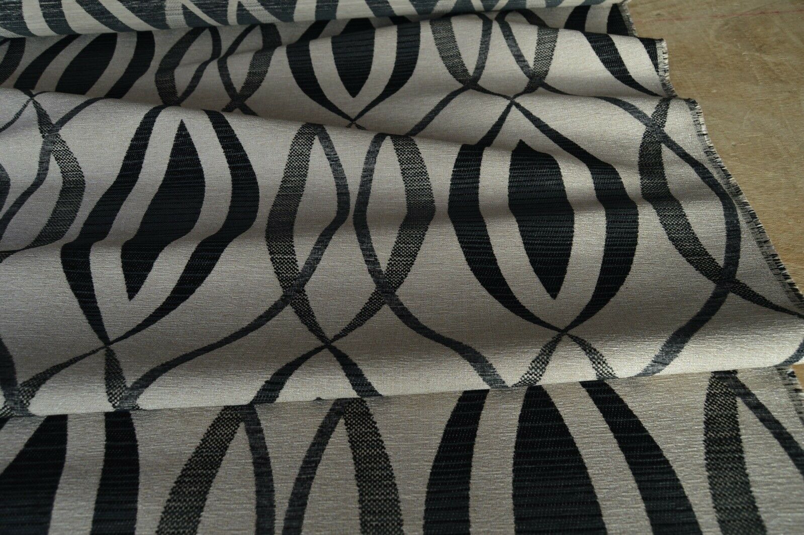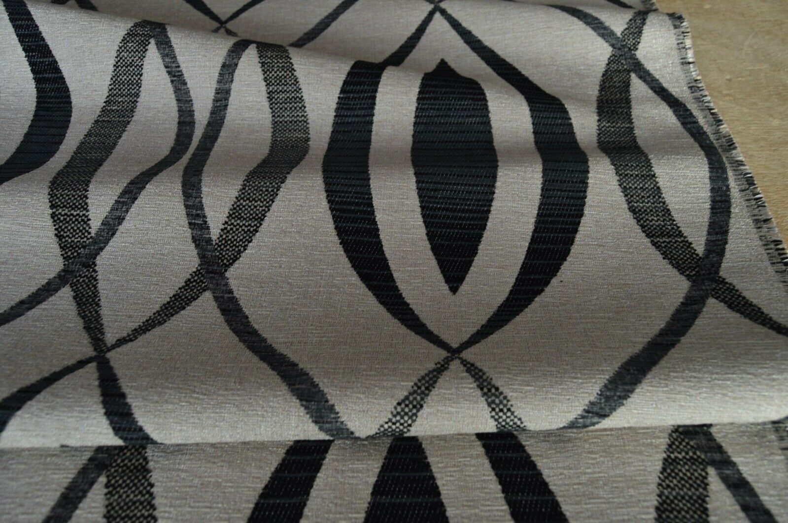 upholstery fabric black charcoal on gold beige back ground geometric robust