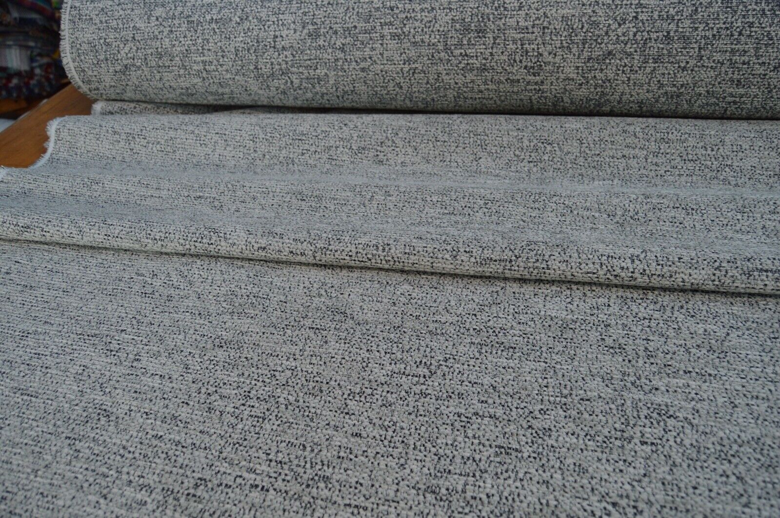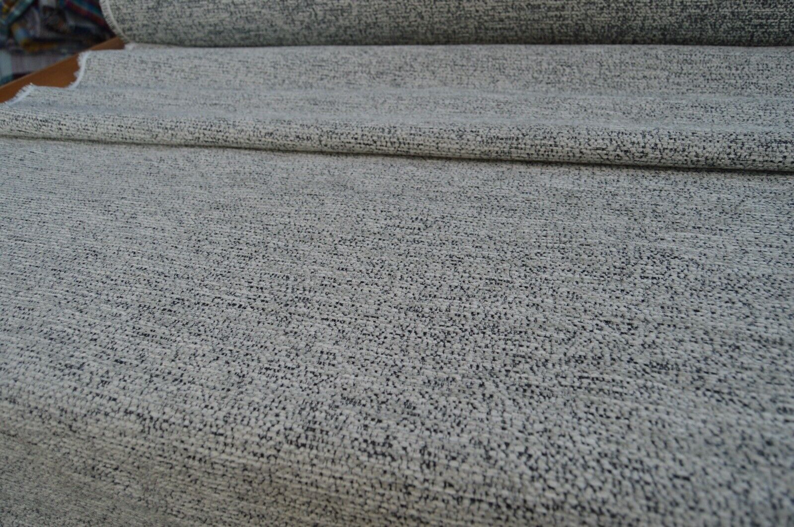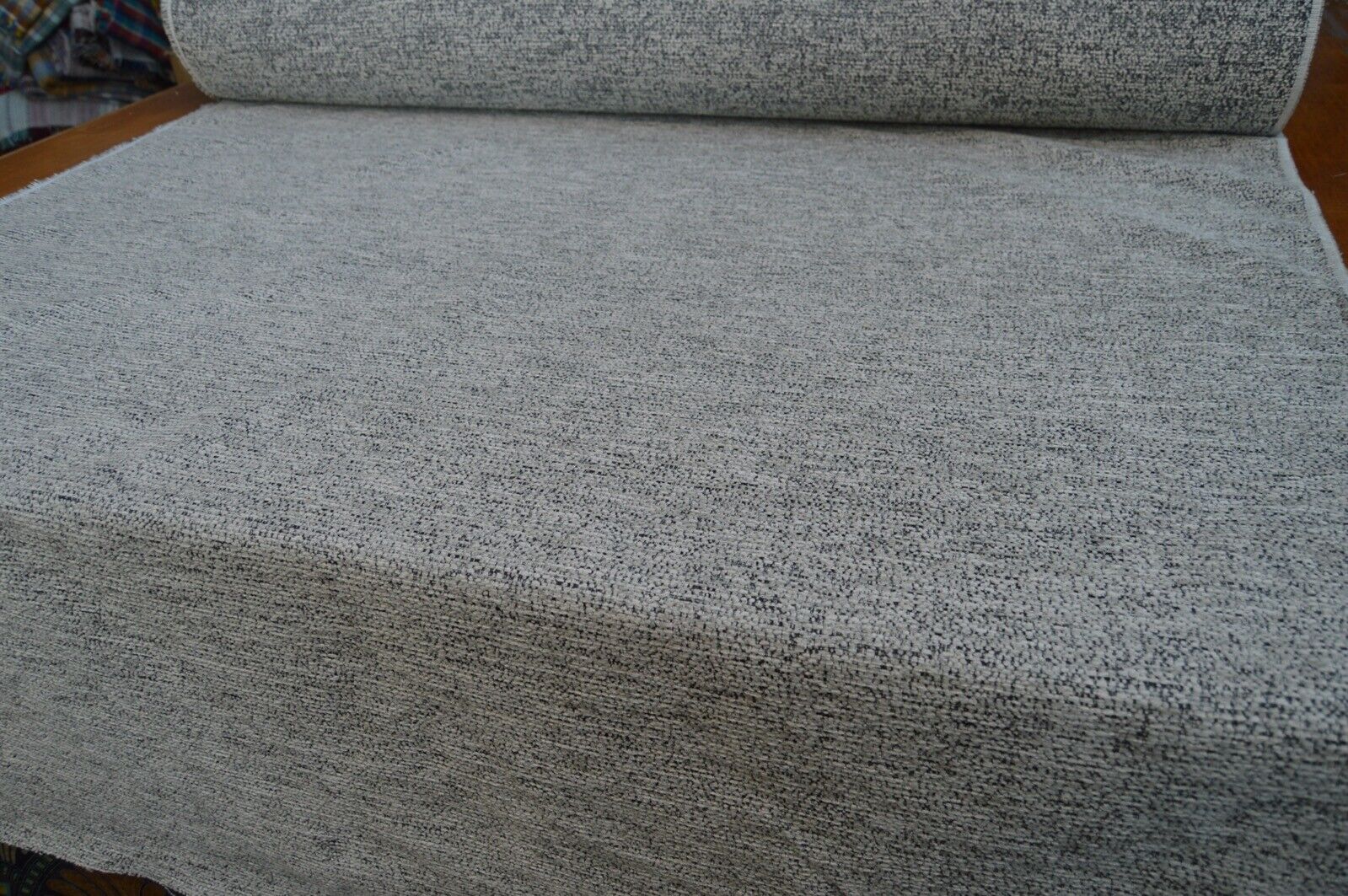 Lovely charcoal and grey shades textured chenille upholstery fabric. A top quality fabric. A durable and robust, fire retardant treated upholstery fabric. Ideal for upholstery projects, caravan, sofa, chairs etc. This is a clearance fabric from a top sofa manufacturer.