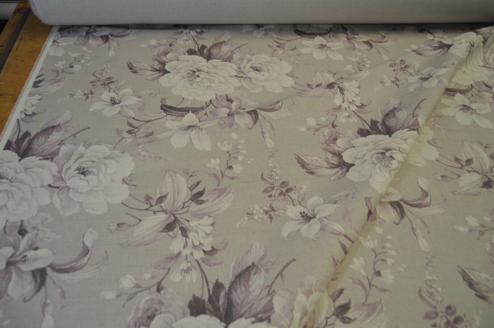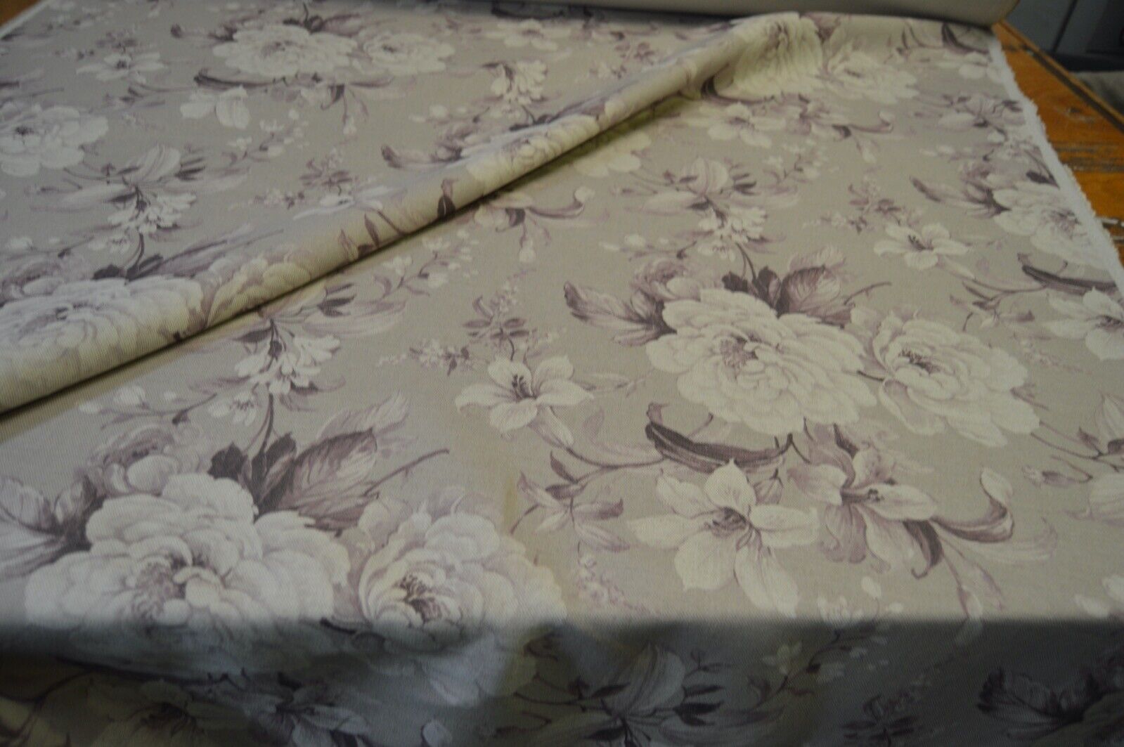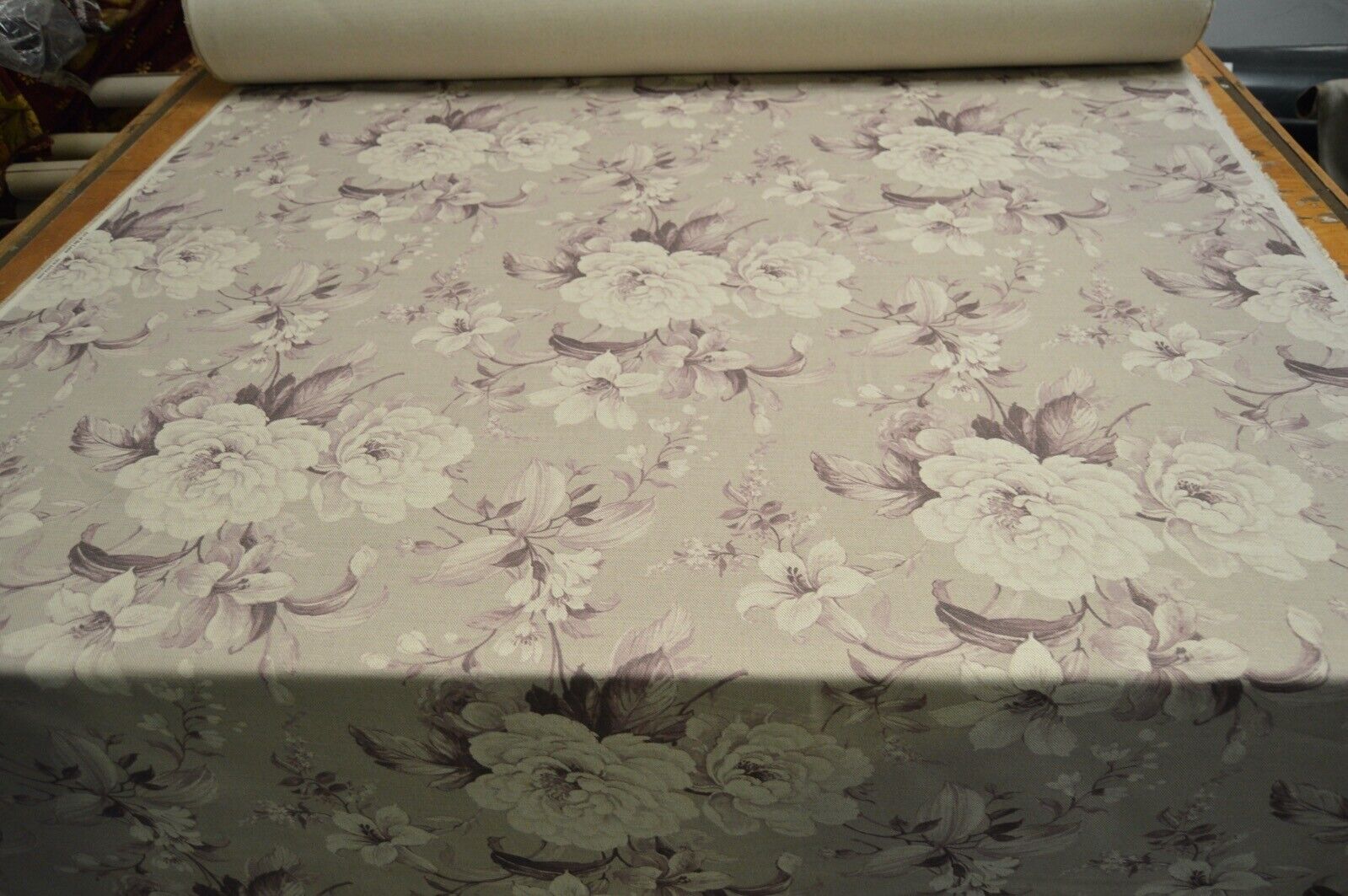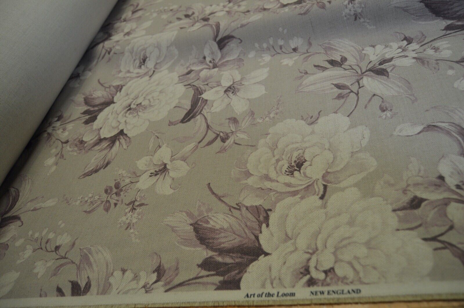 Lovely Art of the Loom New England linen blend fabric, lavender / Damson and natural shades floral fabric. A top quality fabric. A durable and robust, not fire retardant treated fabric.