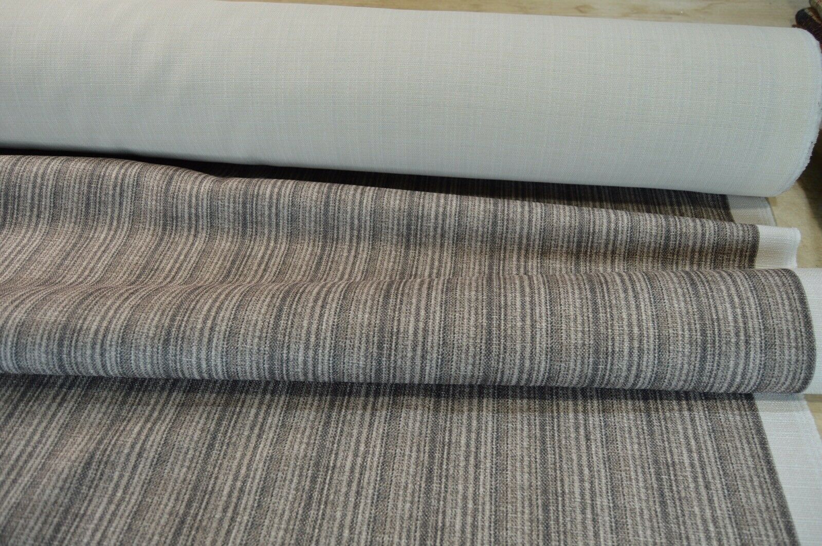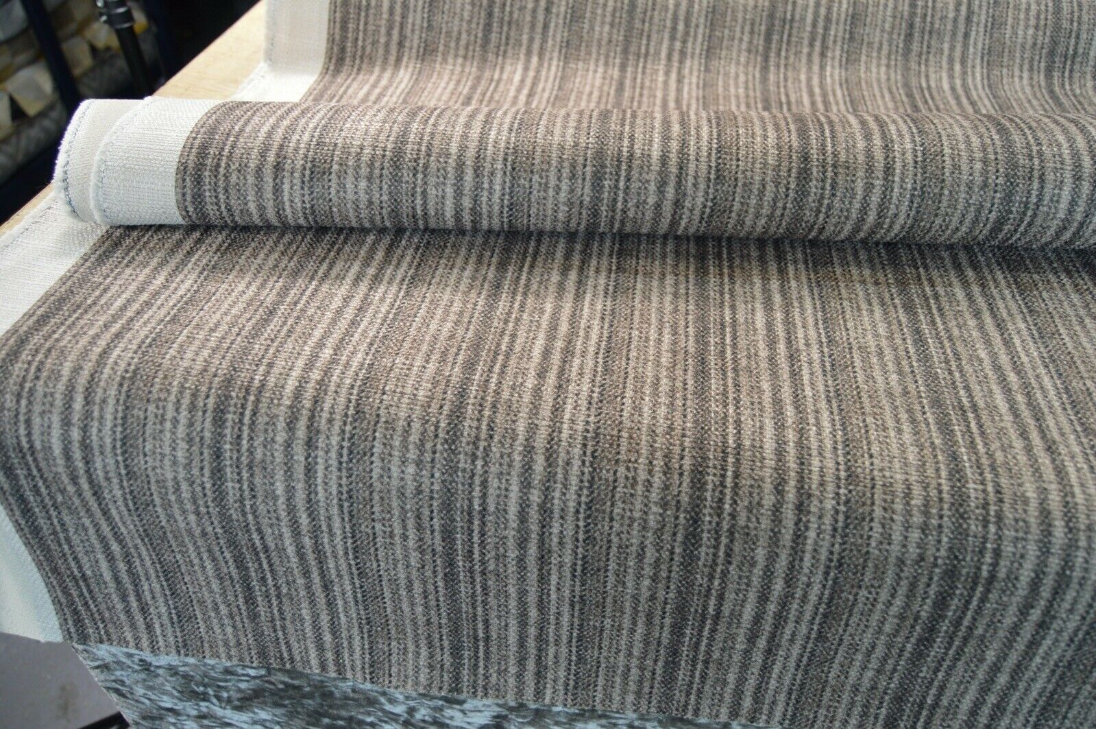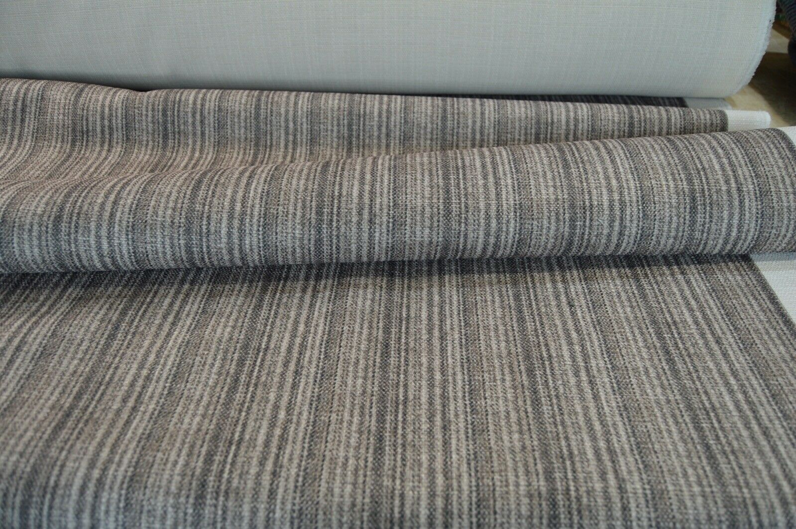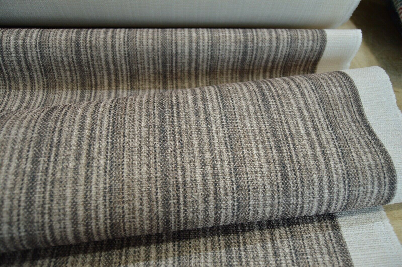 upholstery fabric designer brown shade stripe Art of the Loom linen style fabric
