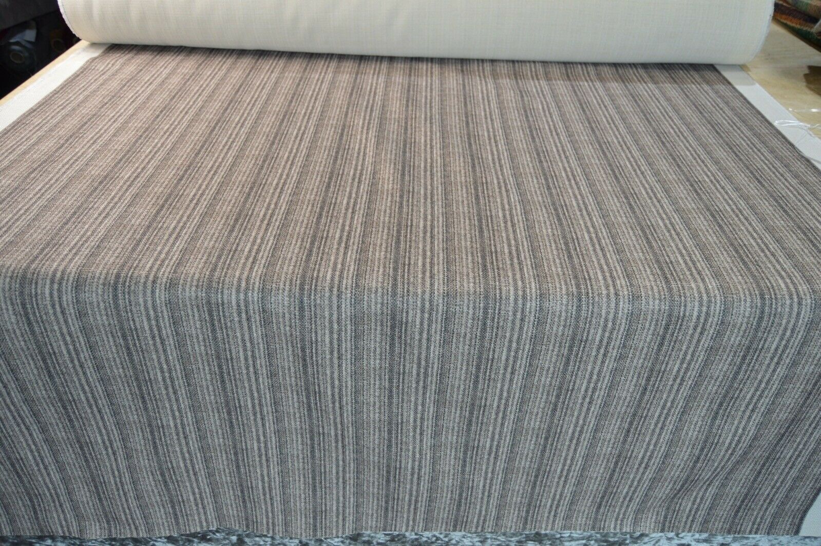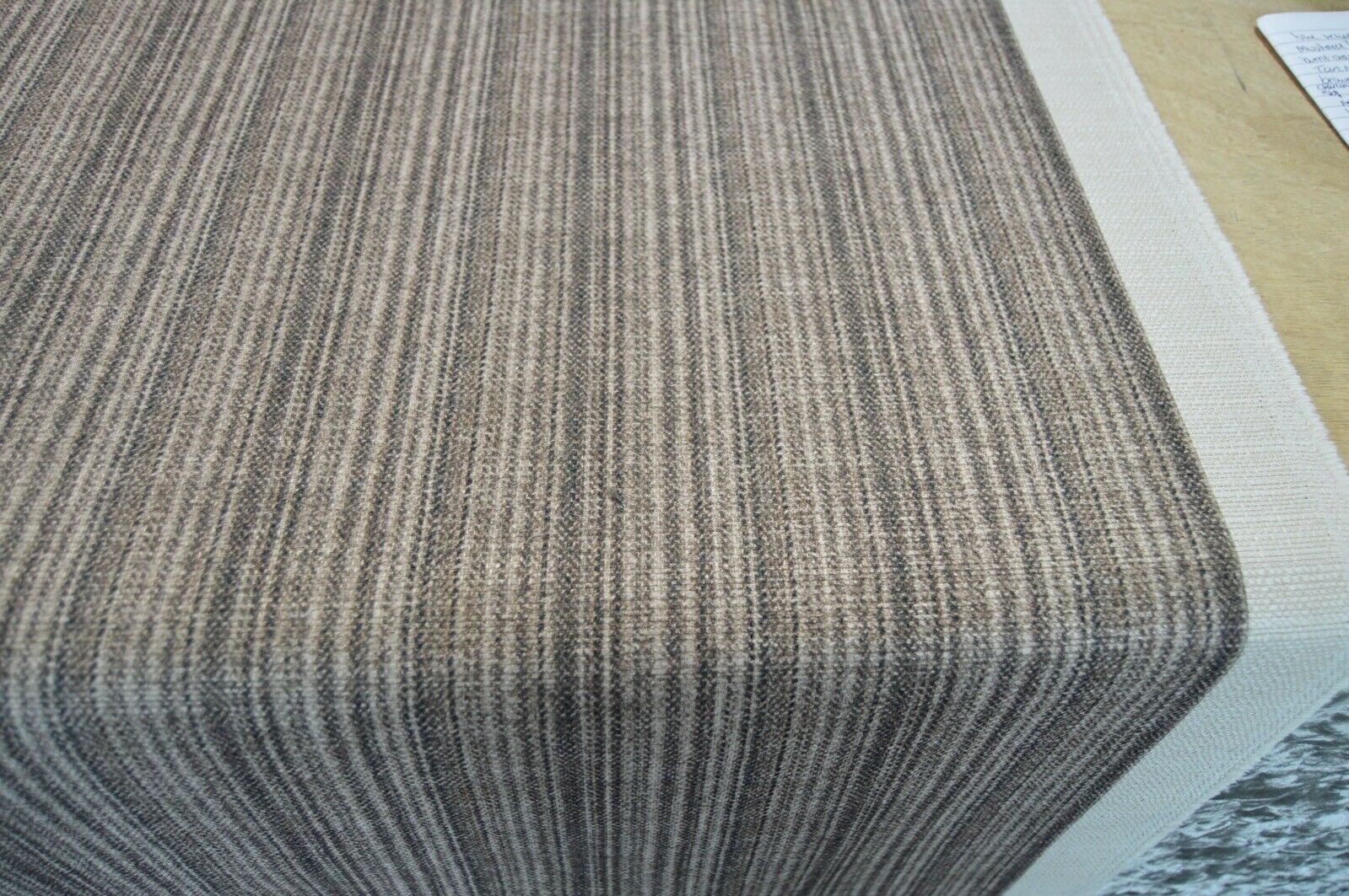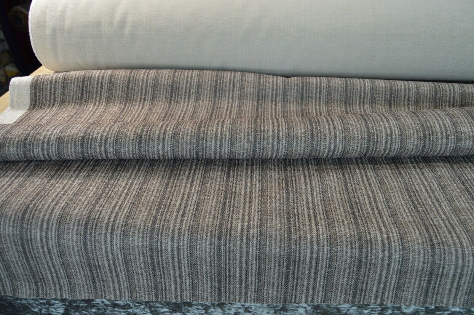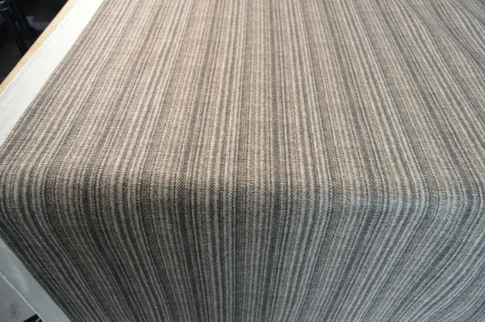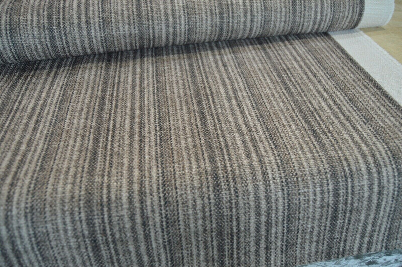 Lovely Art of the Loom linen look style, brown shade stripe fabric upholstery fabric. A top quality fabric. A durable and robust, fire retardant treated upholstery fabric. Ideal for upholstery projects, caravan, sofa, chairs etc. This is a clearance fabric from a top sofa manufacturer.