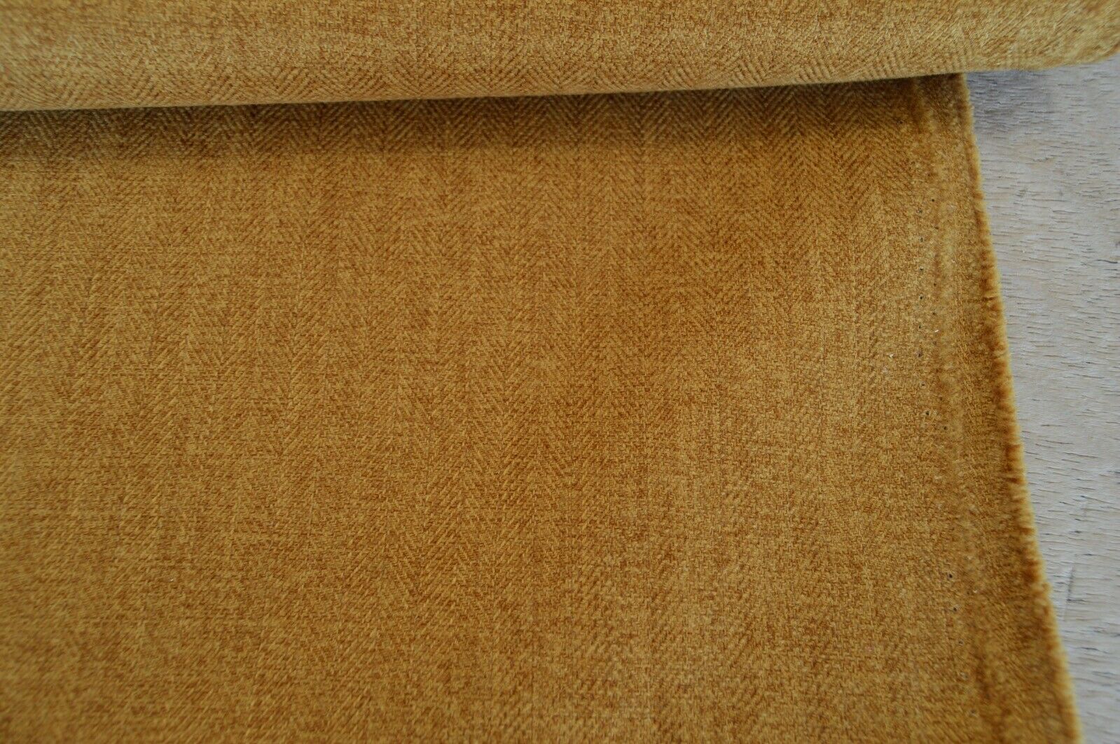 Lovely gold mustard herringbone, wool effect style upholstery fabric. A top quality fabric. A durable and robust, fire retardant treated upholstery fabric. Ideal for upholstery projects, caravan, sofa, chairs etc. This is a clearance fabric from a top sofa manufacturer.