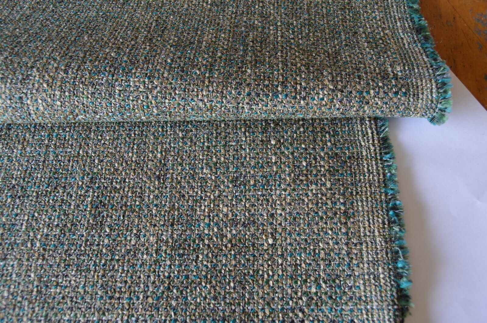 Lovely Warwick (foliage) weave fabric. Green. turquoise and beige shades upholstery fabric. A top quality fabric. A durable and robust, fire retardant treated upholstery fabric. Ideal for upholstery projects, caravan, sofa, chairs etc. This is a clearance fabric from a top sofa manufacturer.