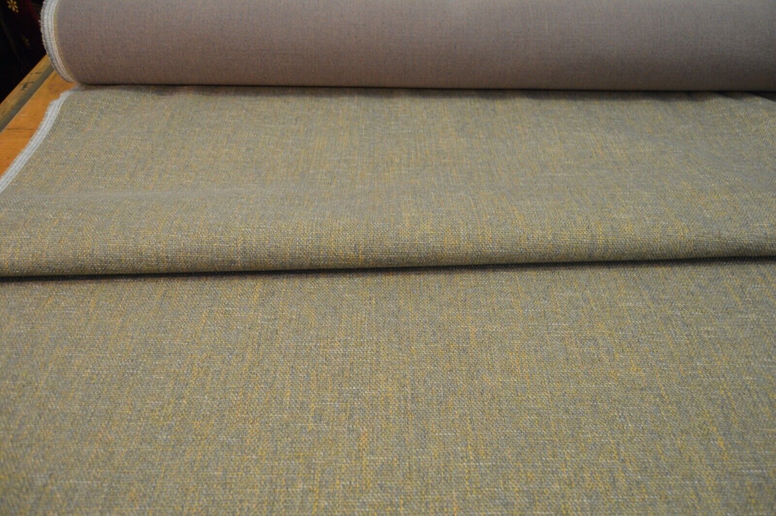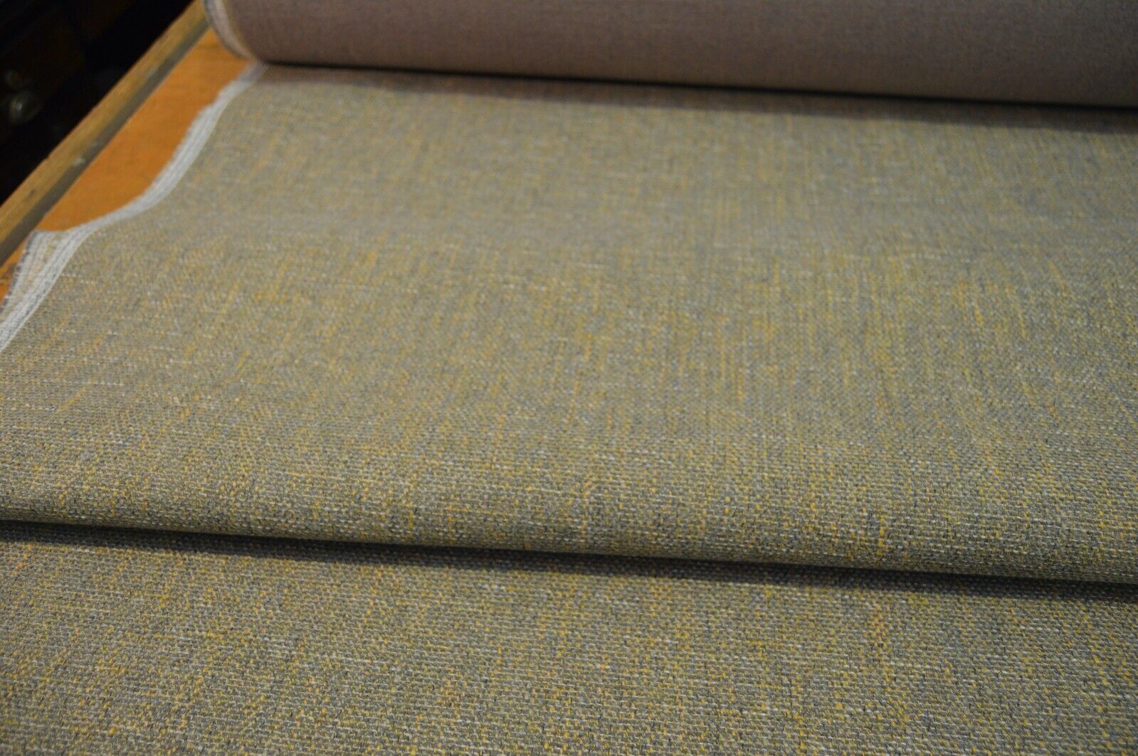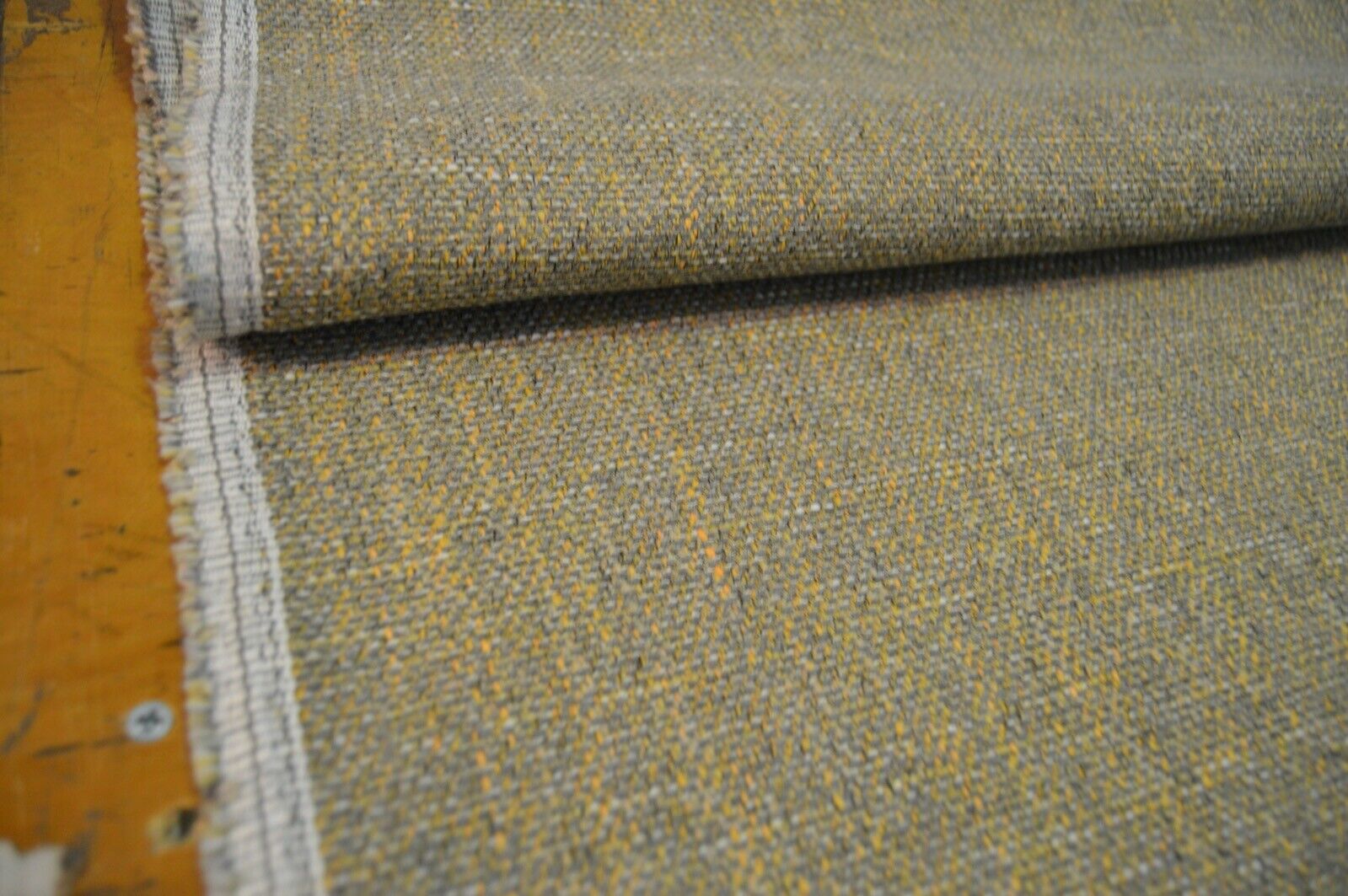 upholstery fabric grey and mustard shades (green hint) chenille weave robust