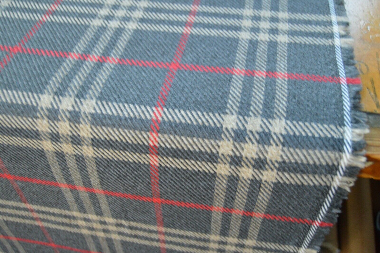Lovely grey red beige tartan/ check wool effct style upholstery fabric. A top quality fabric. A durable and robust, fire retardant treated upholstery fabric. Ideal for upholstery projects, caravan, sofa, chairs etc. This is a clearance fabric from a top sofa manufacturer.