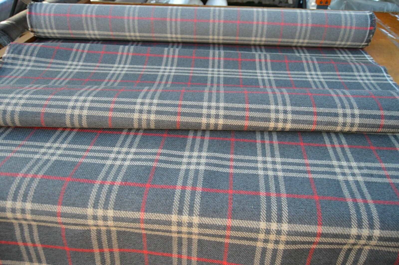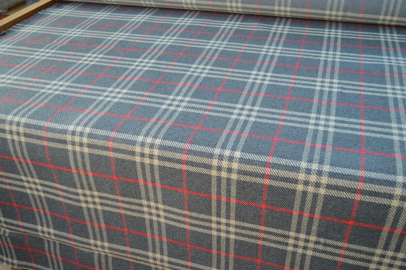 upholstery fabric grey red beige tartan check wool effect look robust durable