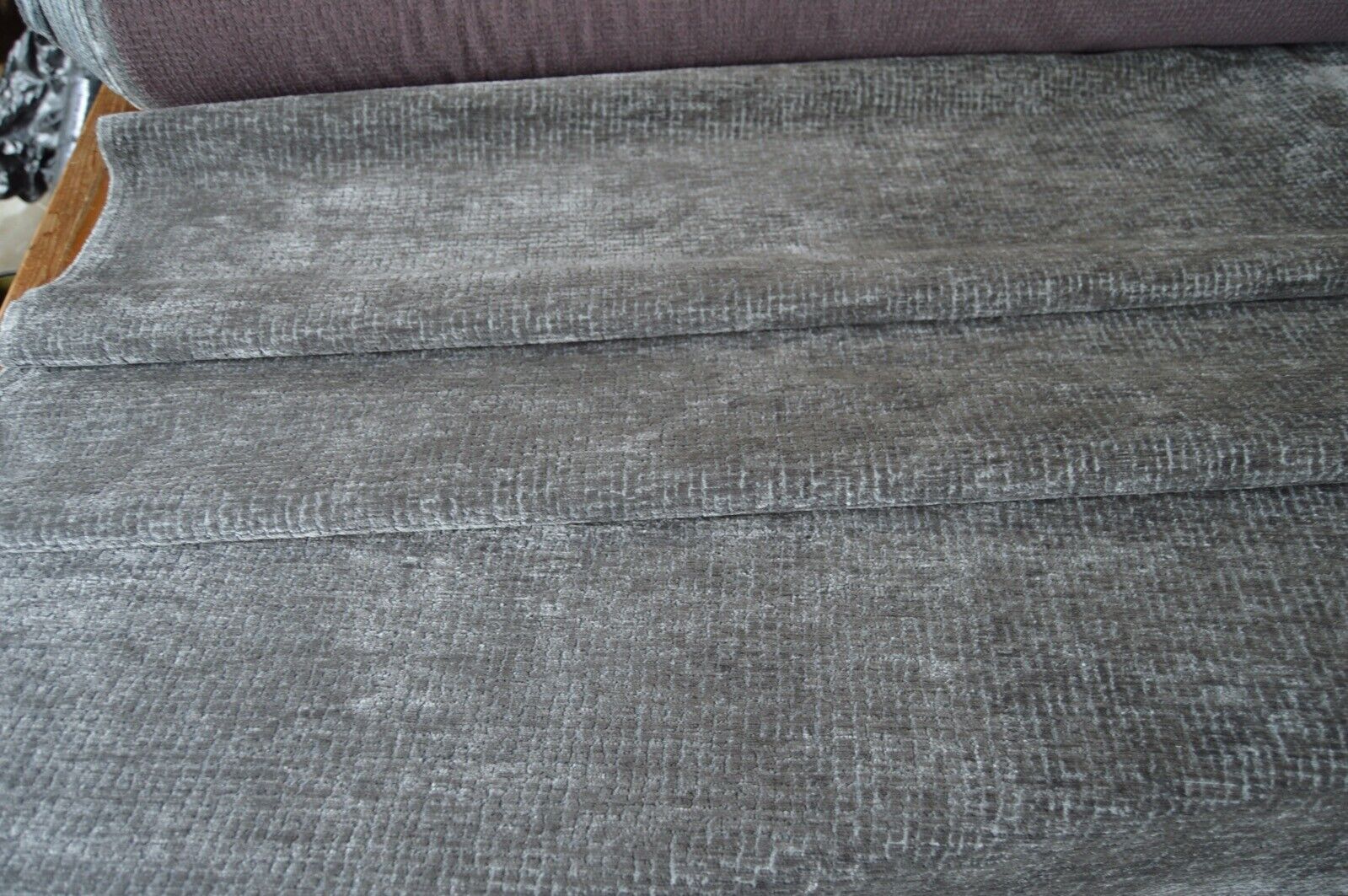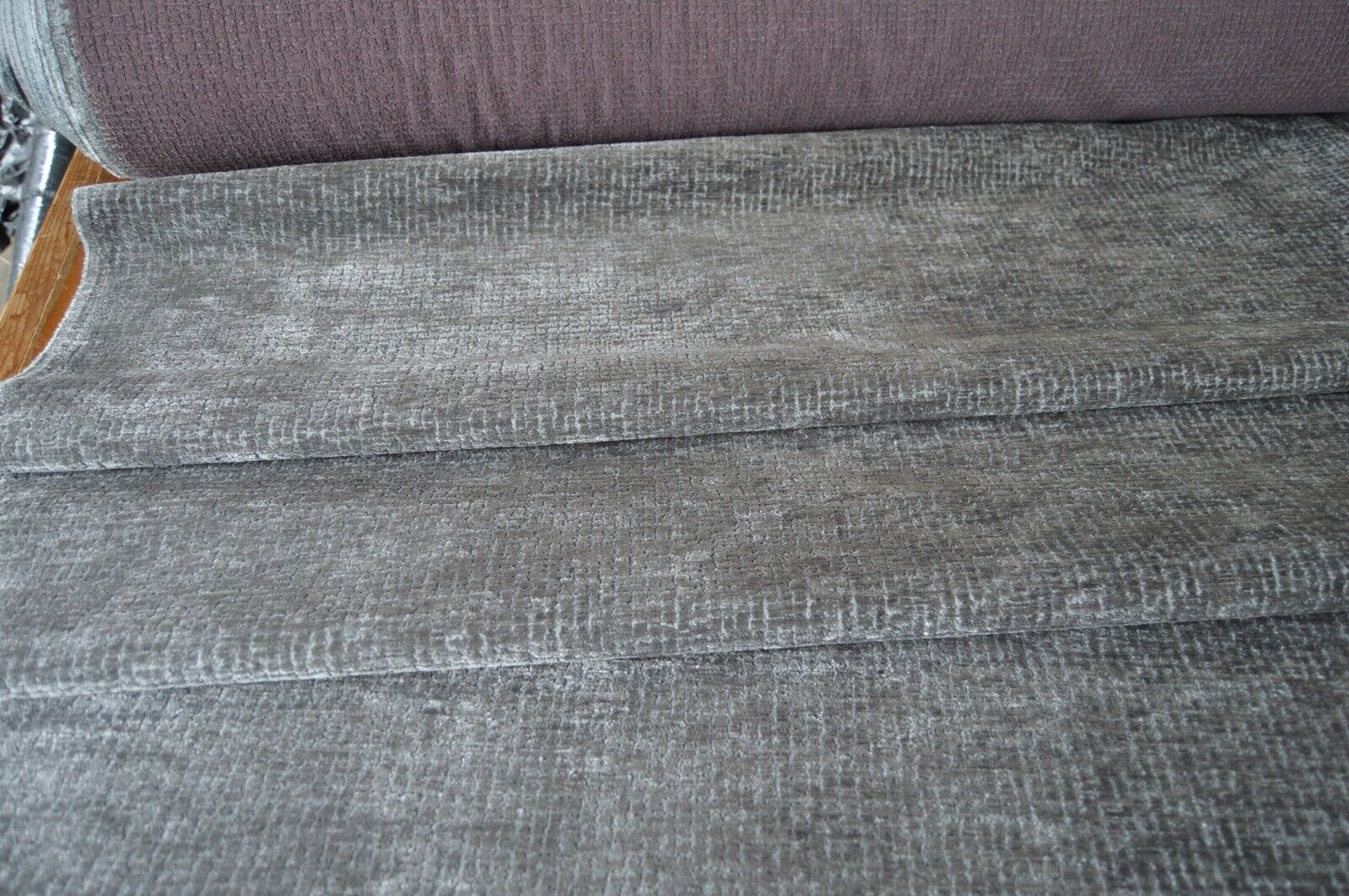 Lovely grey soft feel textured feel chenille upholstery fabric. A top quality fabric. A durable and robust, fire retardant treated upholstery fabric. Ideal for upholstery projects, caravan, sofa, chairs etc. This is a clearance fabric from a top sofa manufacturer.
