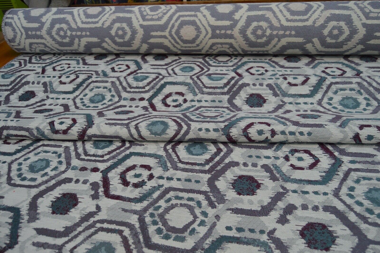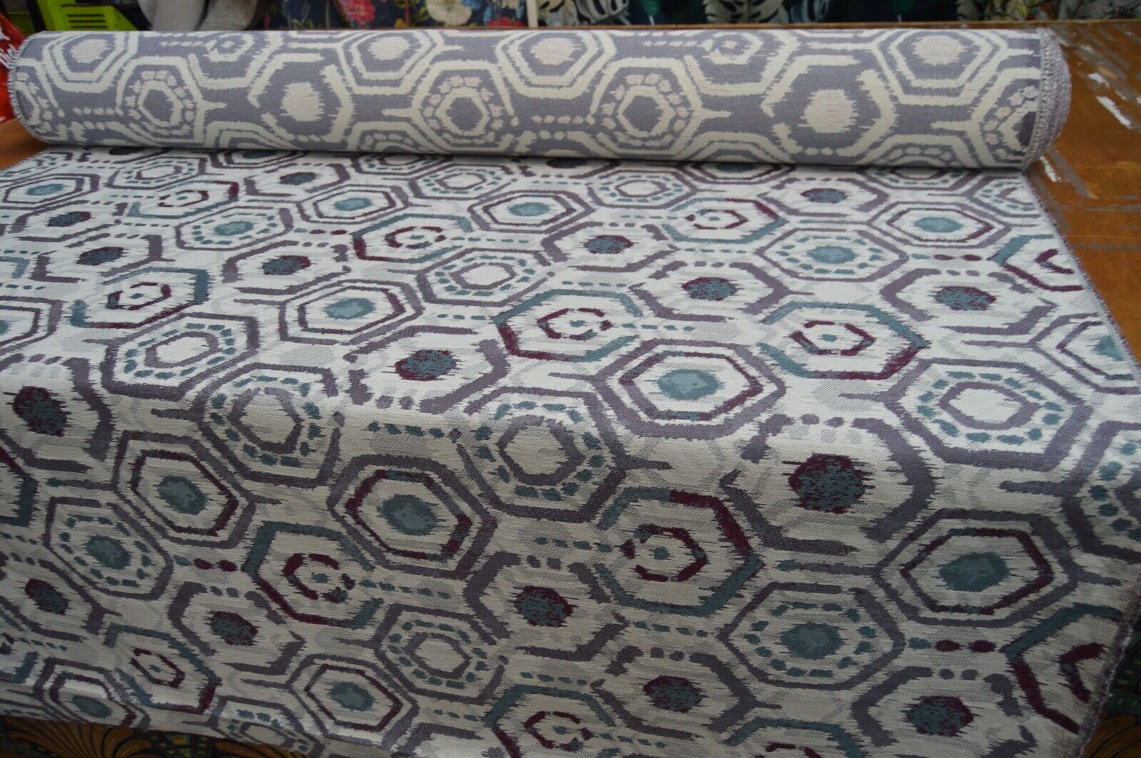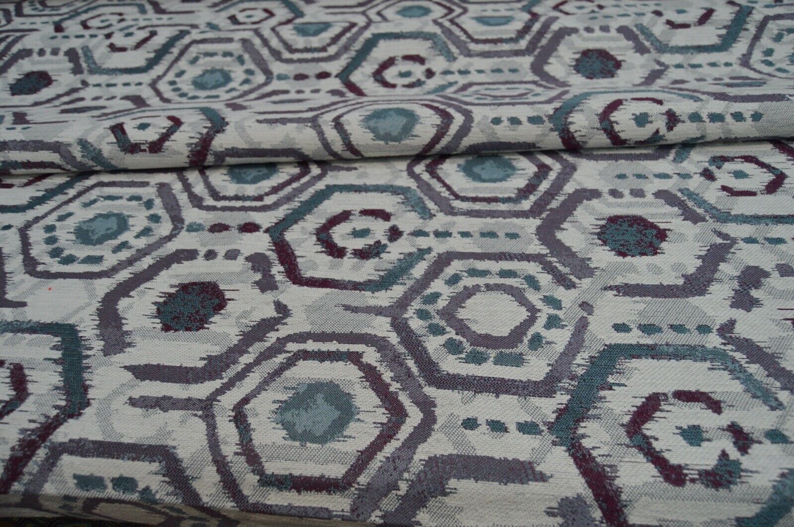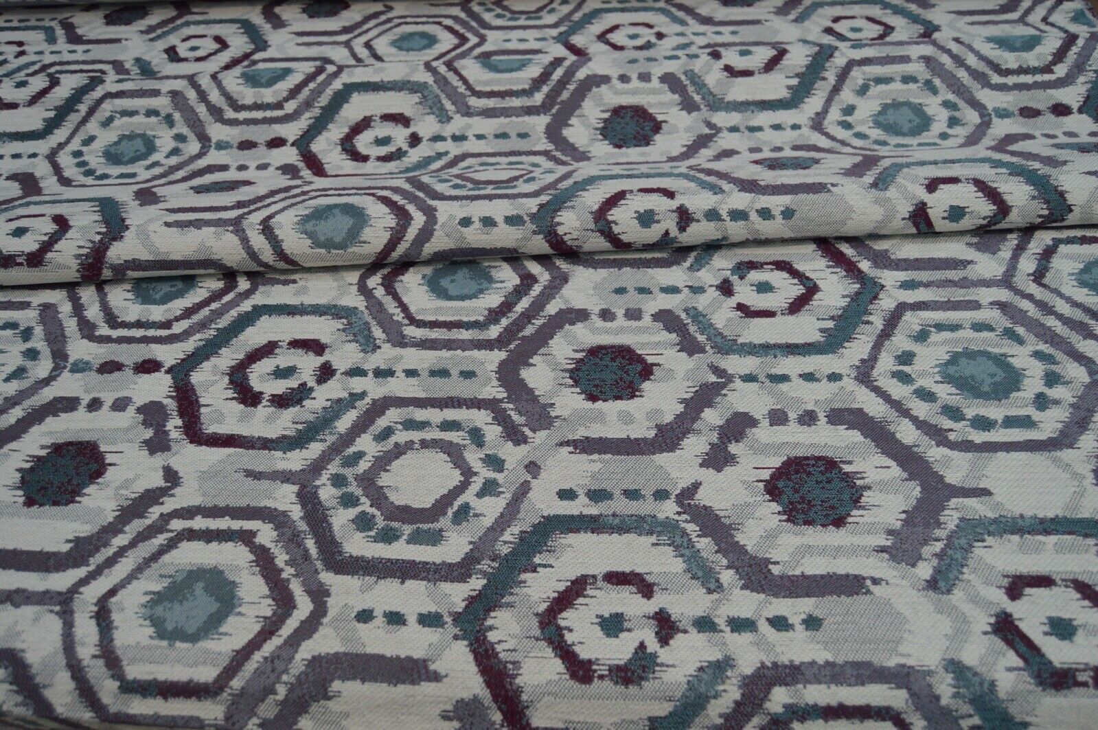 upholstery fabric purple cream turquoise chenille geometric design durable