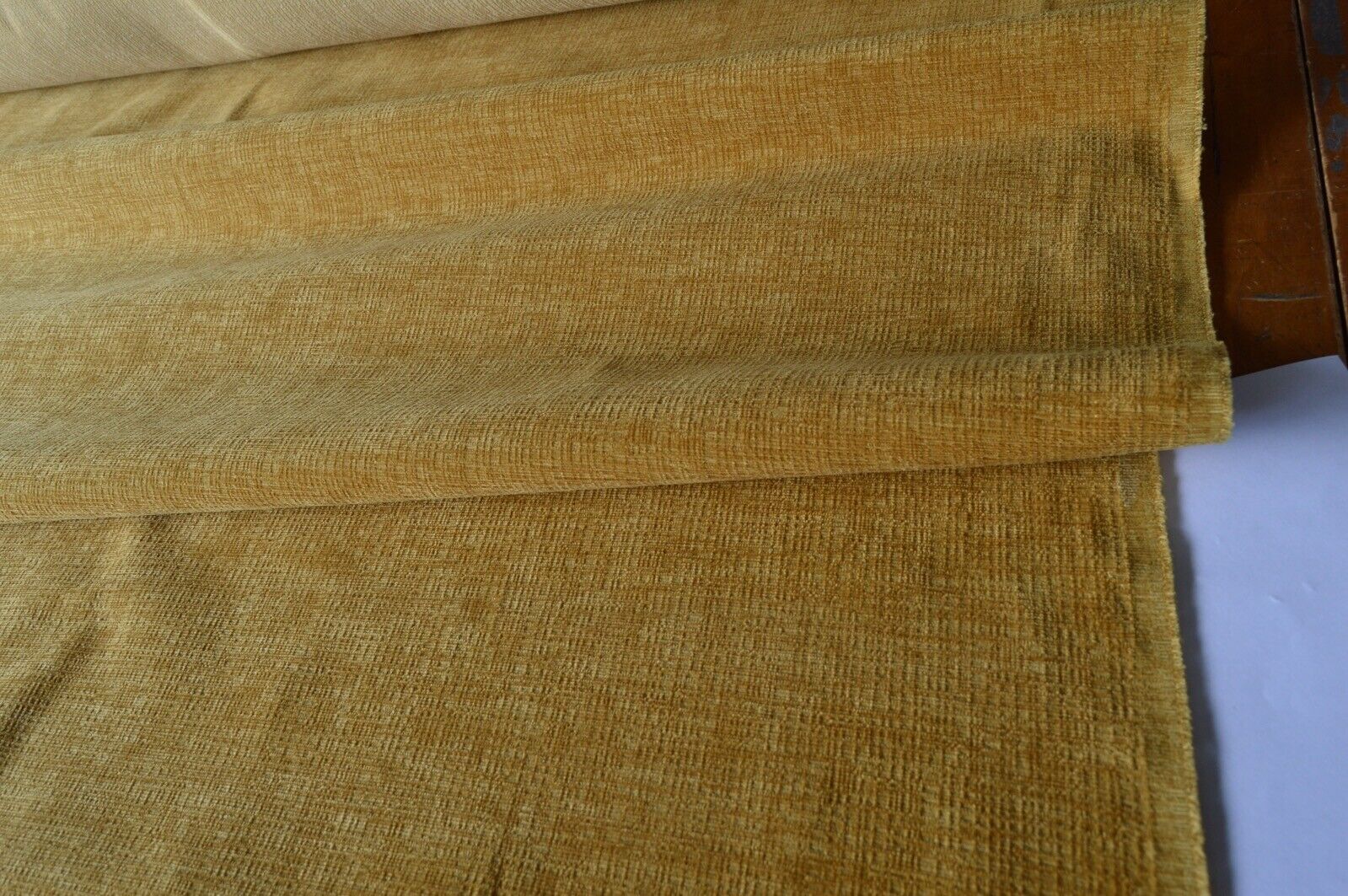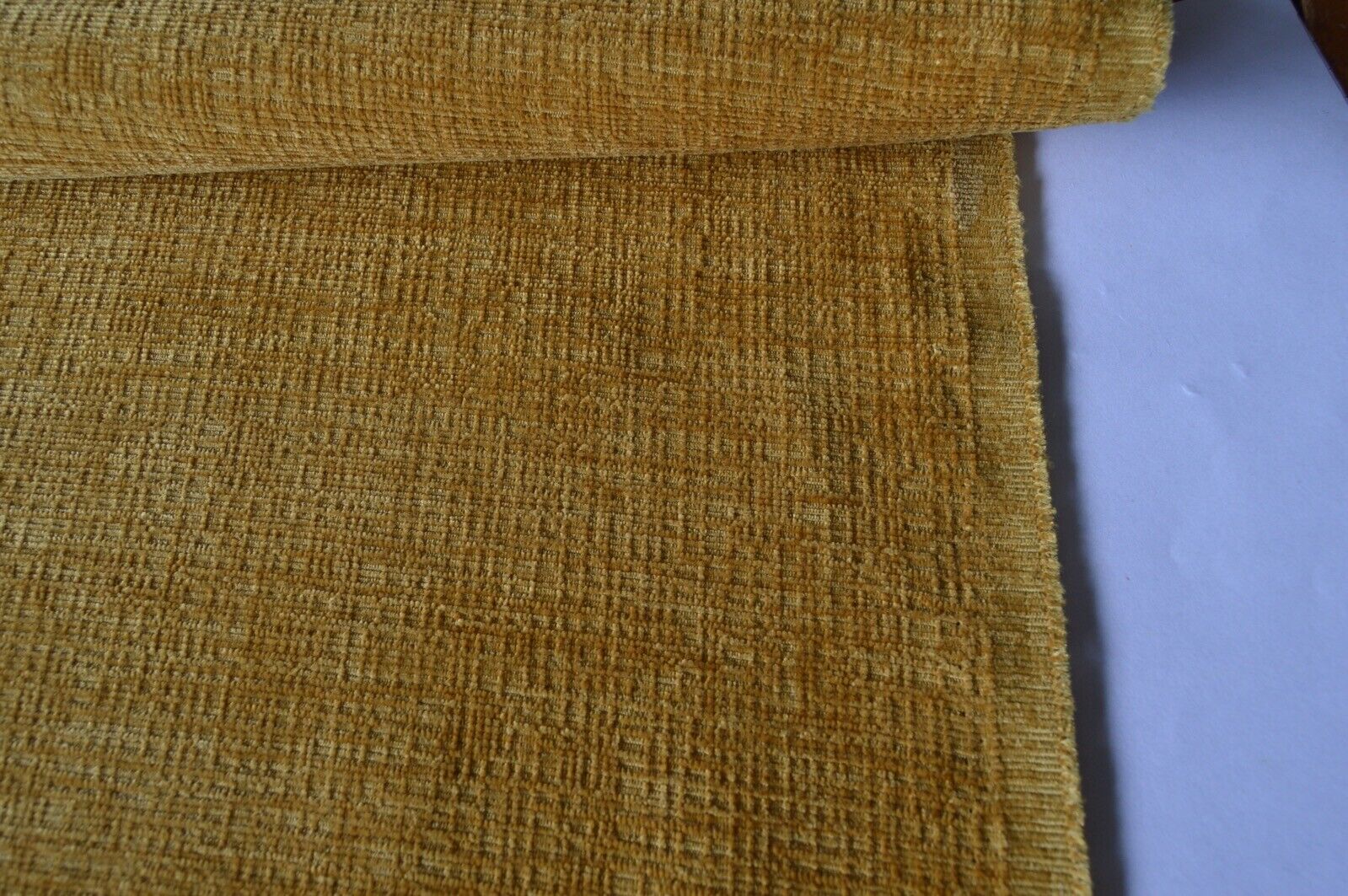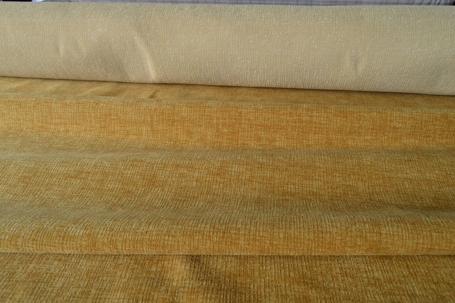 Lovely rich starburst, yelllow gold chenille upholstery fabric. A top quality fabric. A durable and robust, fire retardant treated upholstery fabric. Ideal for upholstery projects, caravan, sofa, chairs etc. This is a clearance fabric from a top sofa manufacturer.