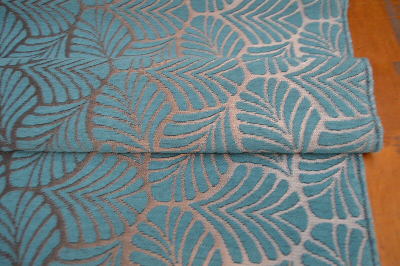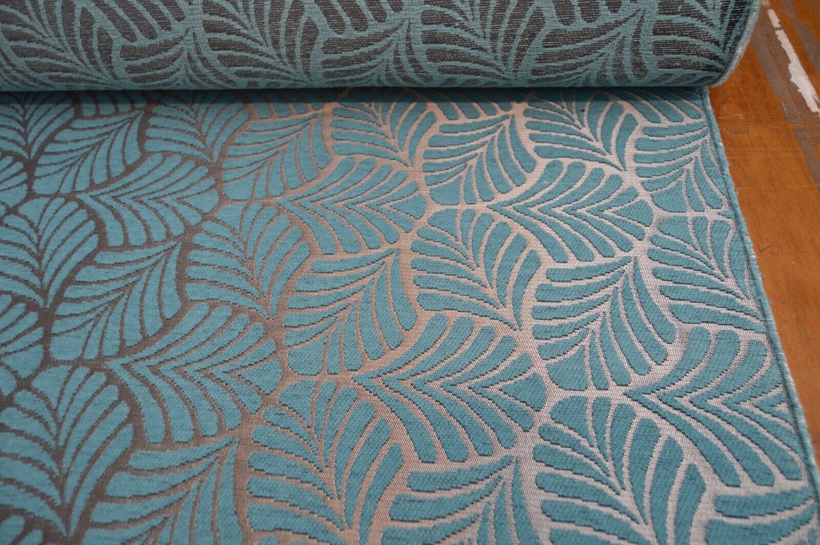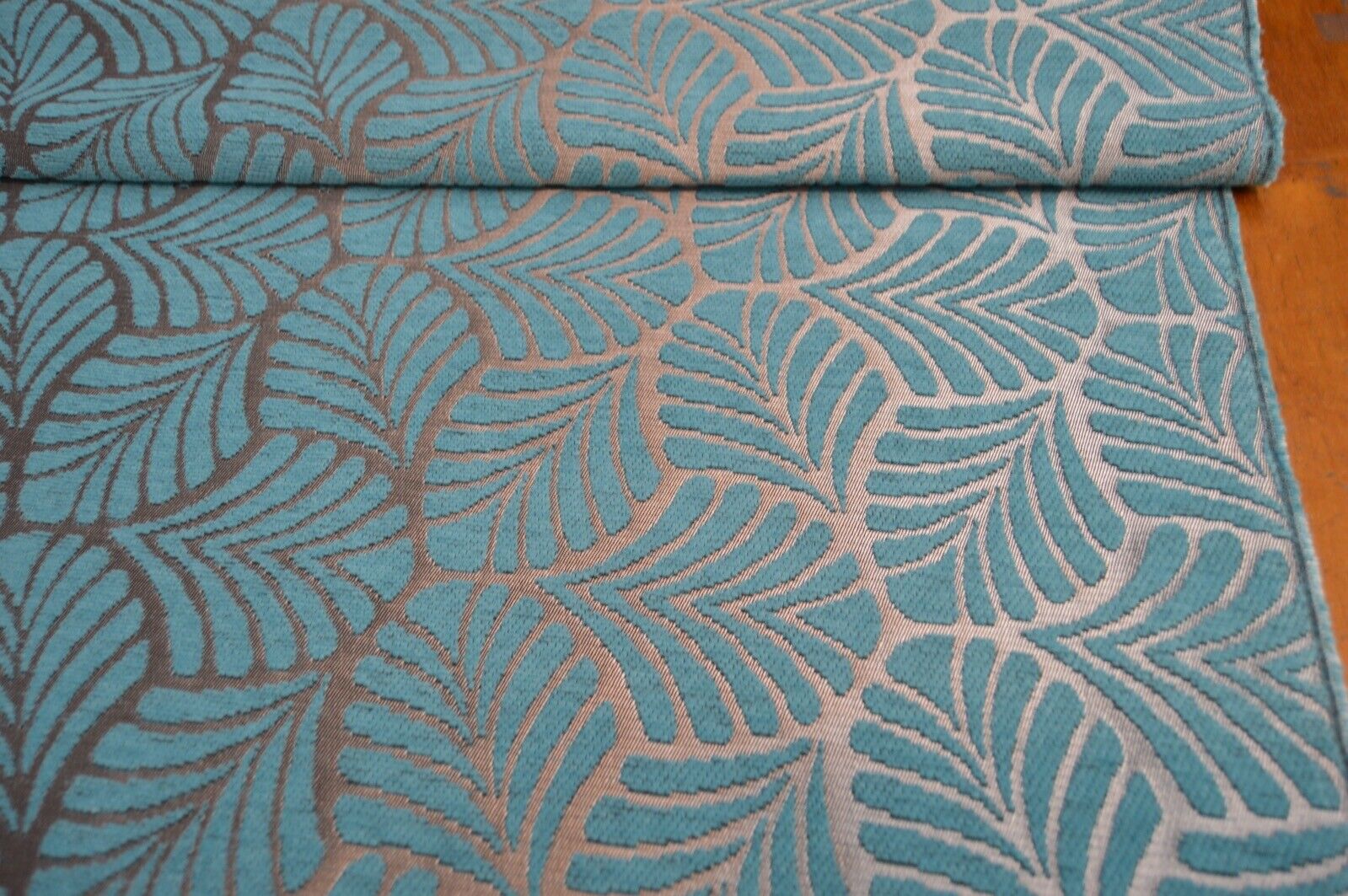 upholstery fabric teal metallic silver geometric leaf chenille robust durable